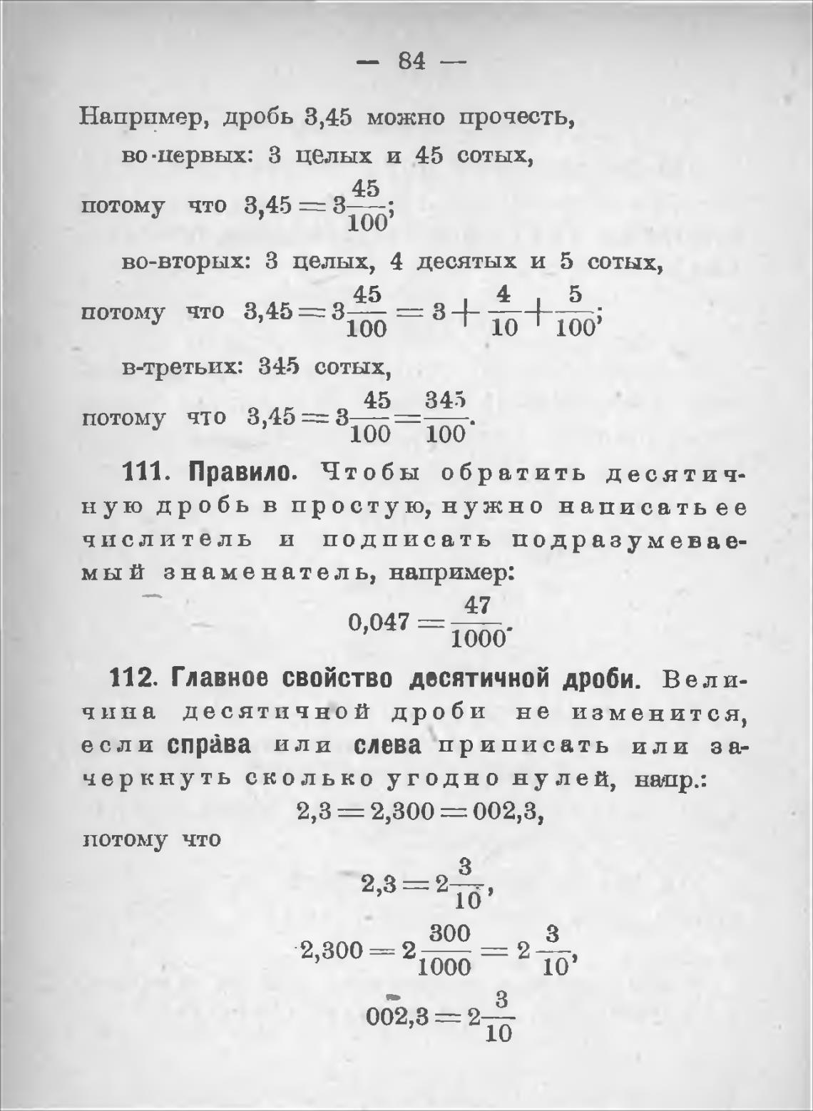 111. Правило. Чтобы обратить десятич-