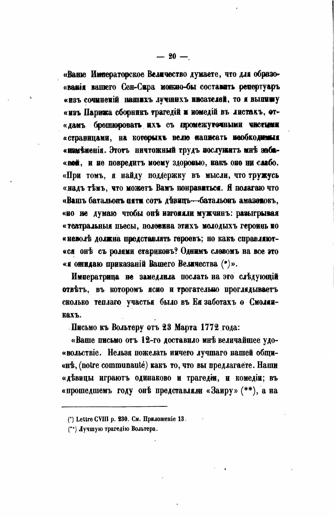 Письмо кь Вольтеру отъ 28 Марта 1772 года: