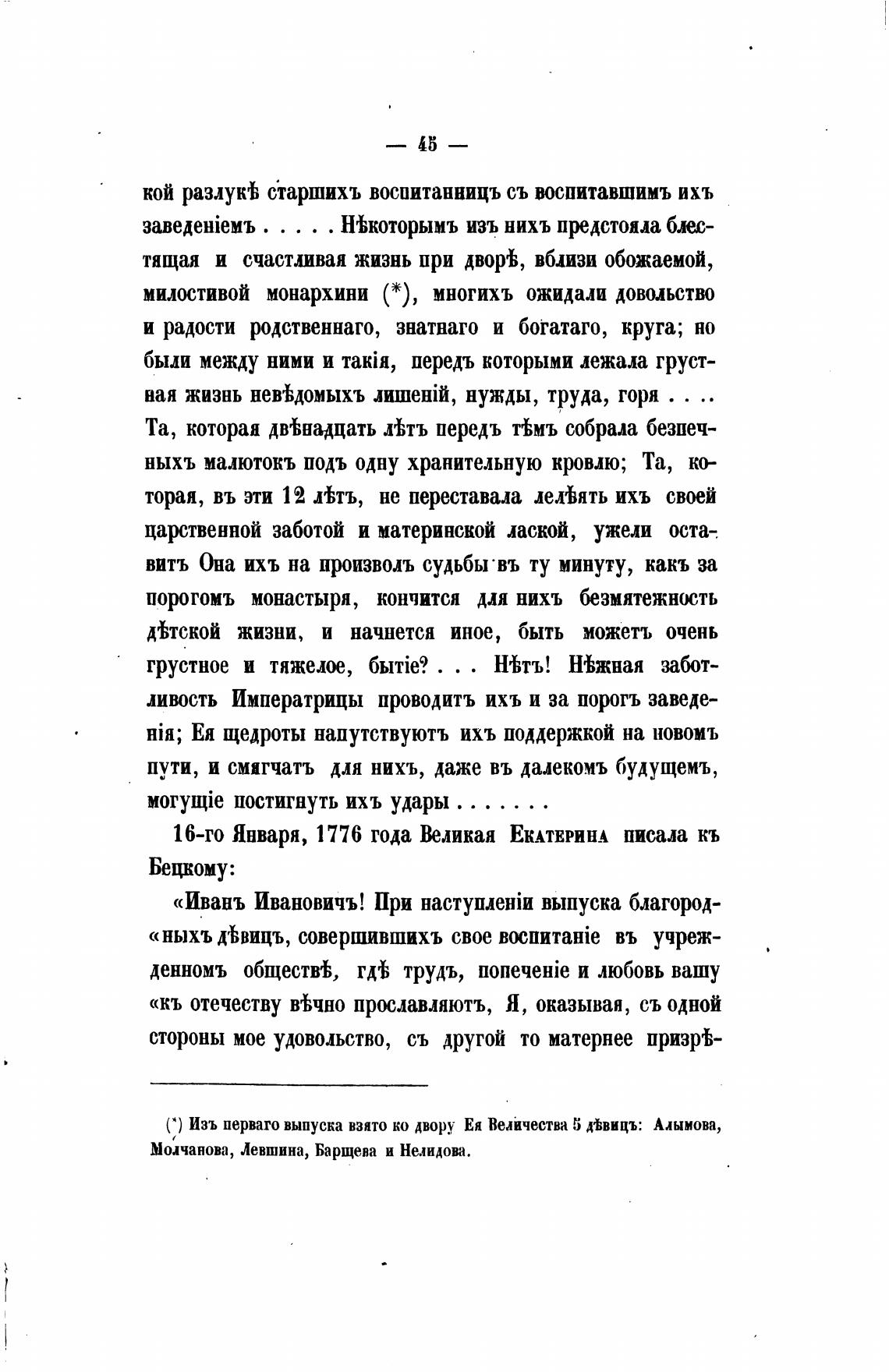 С) Изъ перваго выпуска взято ко двору Ея Величества 5 Авицъ: Алымова,