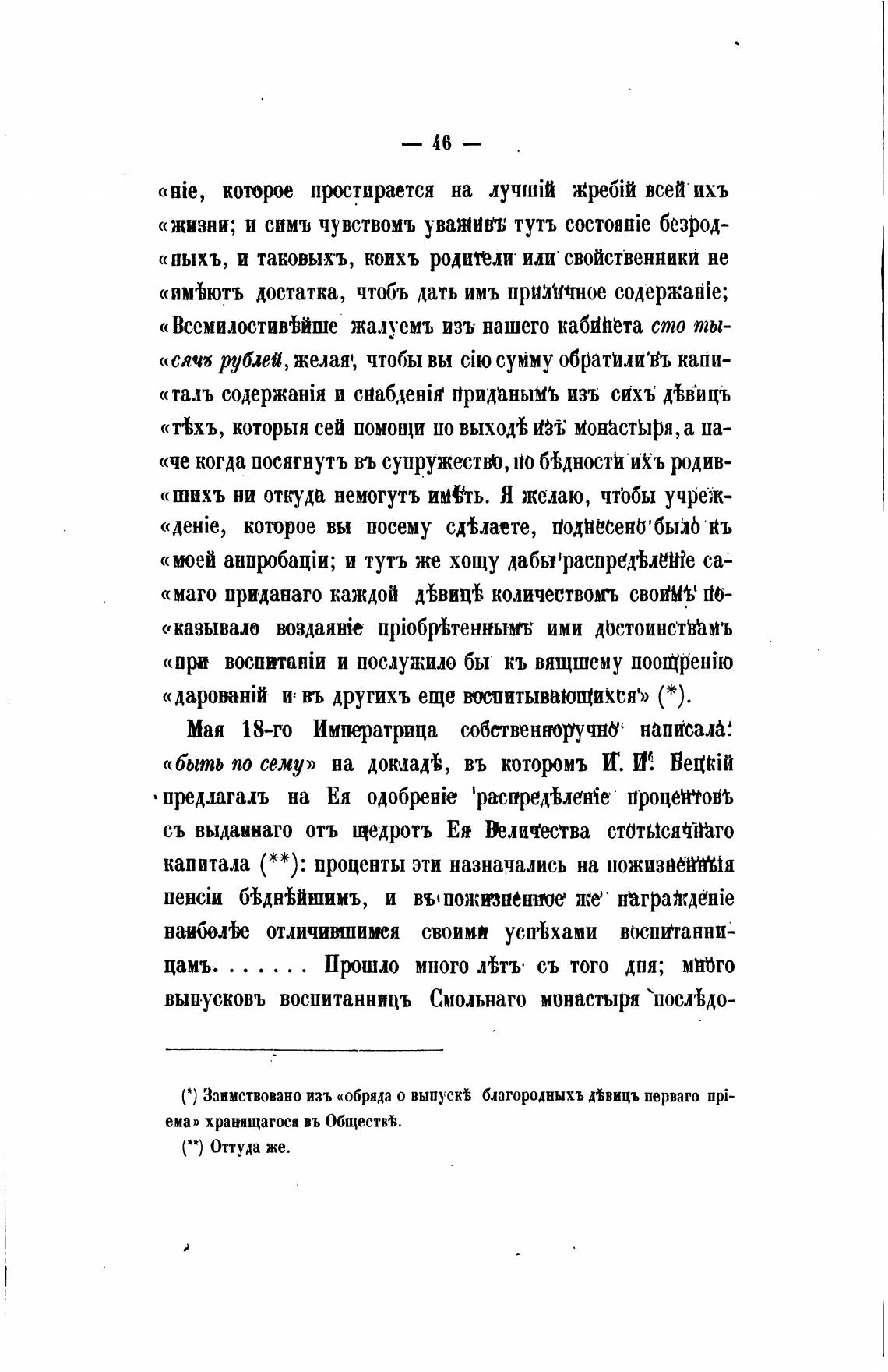С) Заимствовано изъ «обряда о выпус% благородныхъ д%вицъ перваго npi-