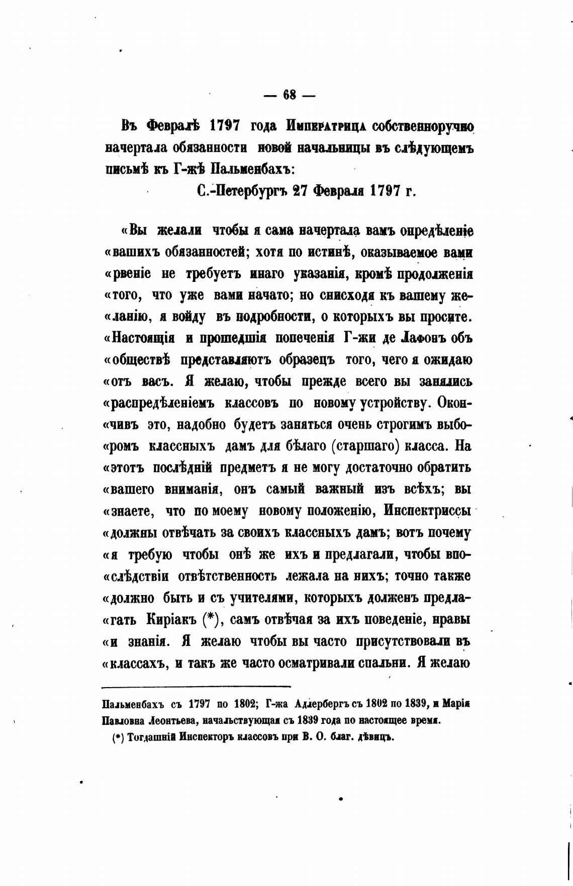 Пальменбахъ съ 1797 по 1802; Г-жа Анербергъ съ 1802 по 1839, и Mapia