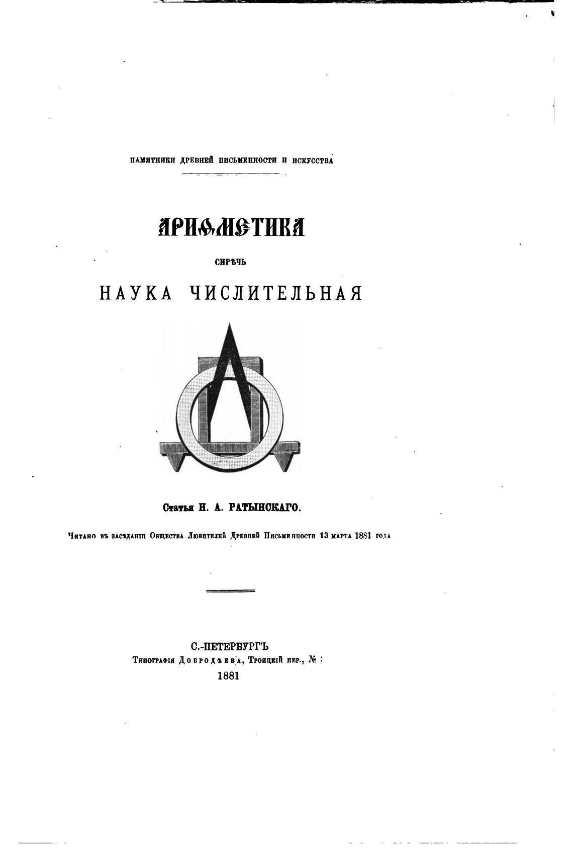 Статьа Н. А. РАТЫНОЕЫ'О.
