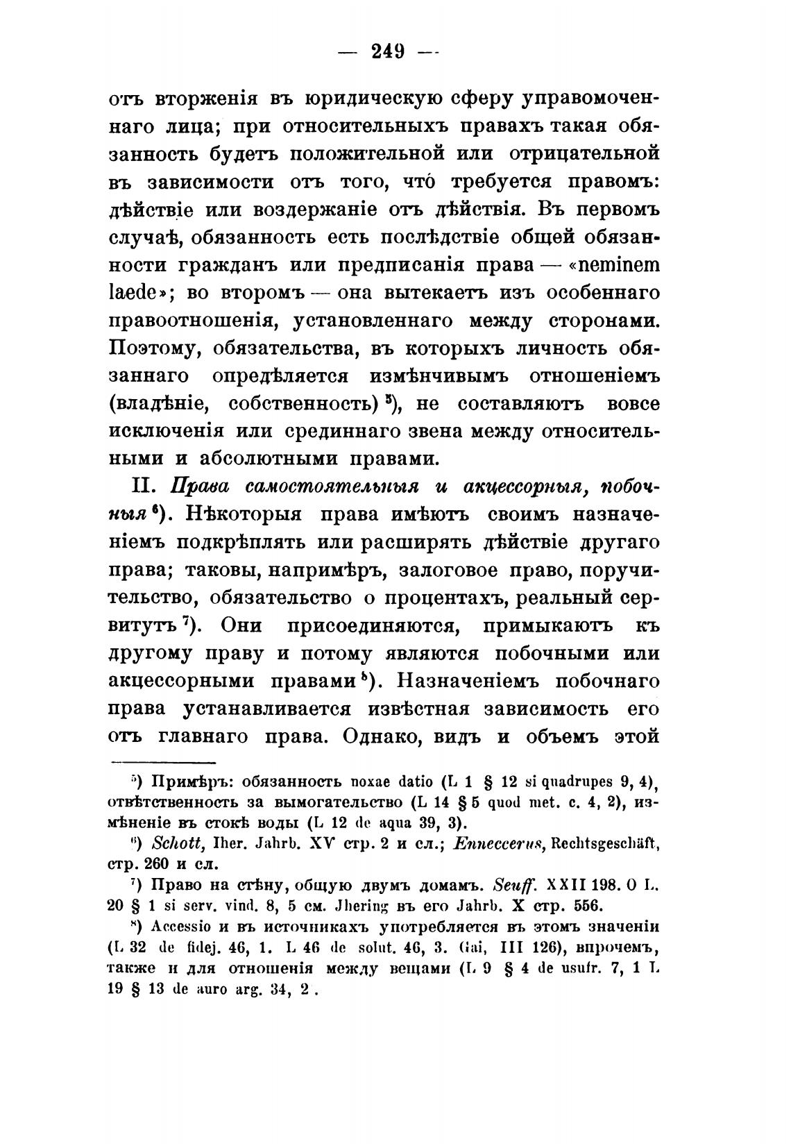 II. Права самостоятелъпыя и акцессорныя, побоч-