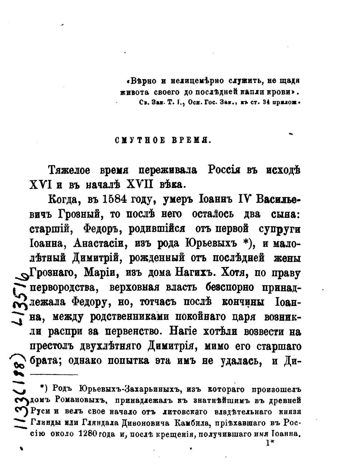• ) Родь Юрьевыхъ-3ахарьиныхъ, изъ вотораго произошелъ