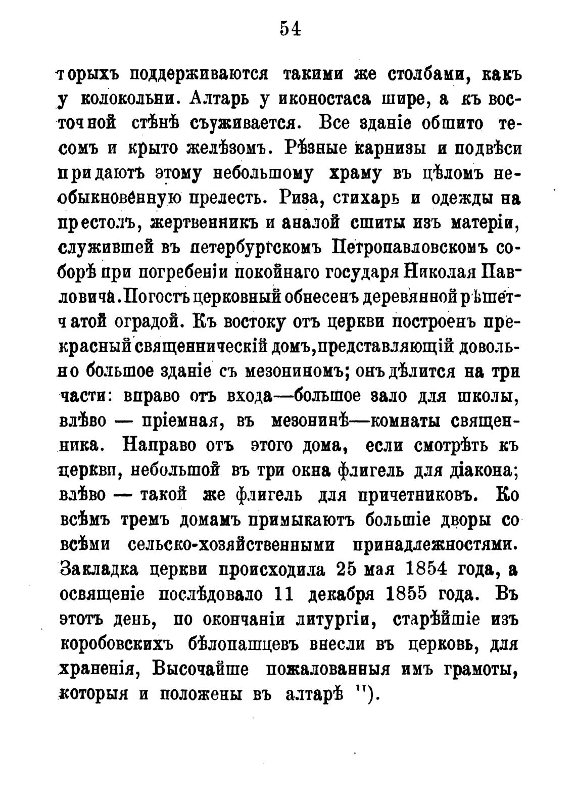 Закладка церкви происходила 25 мая 1854 года, а