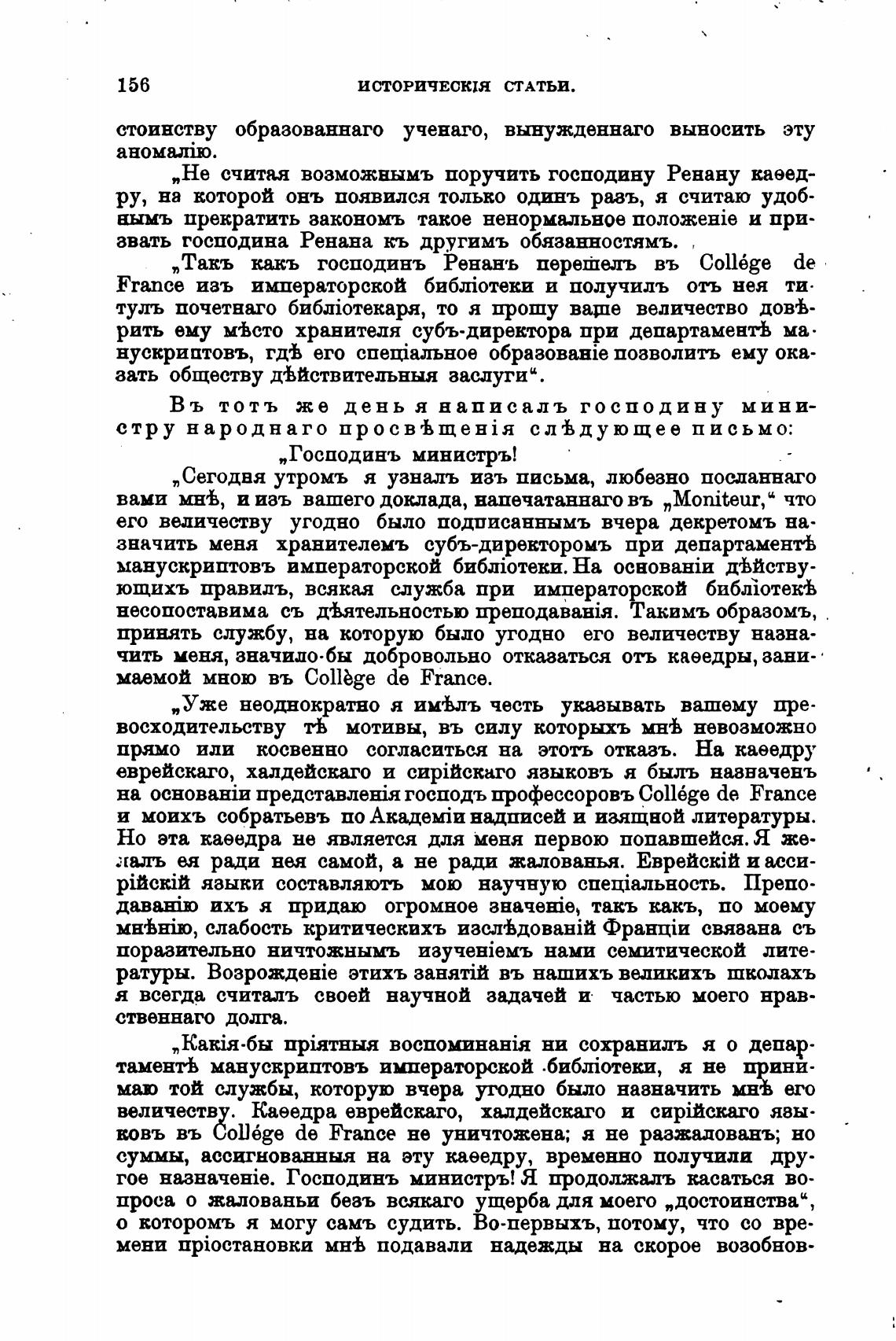 „Не считая возможнымъ поручить господину Ренану каеед-