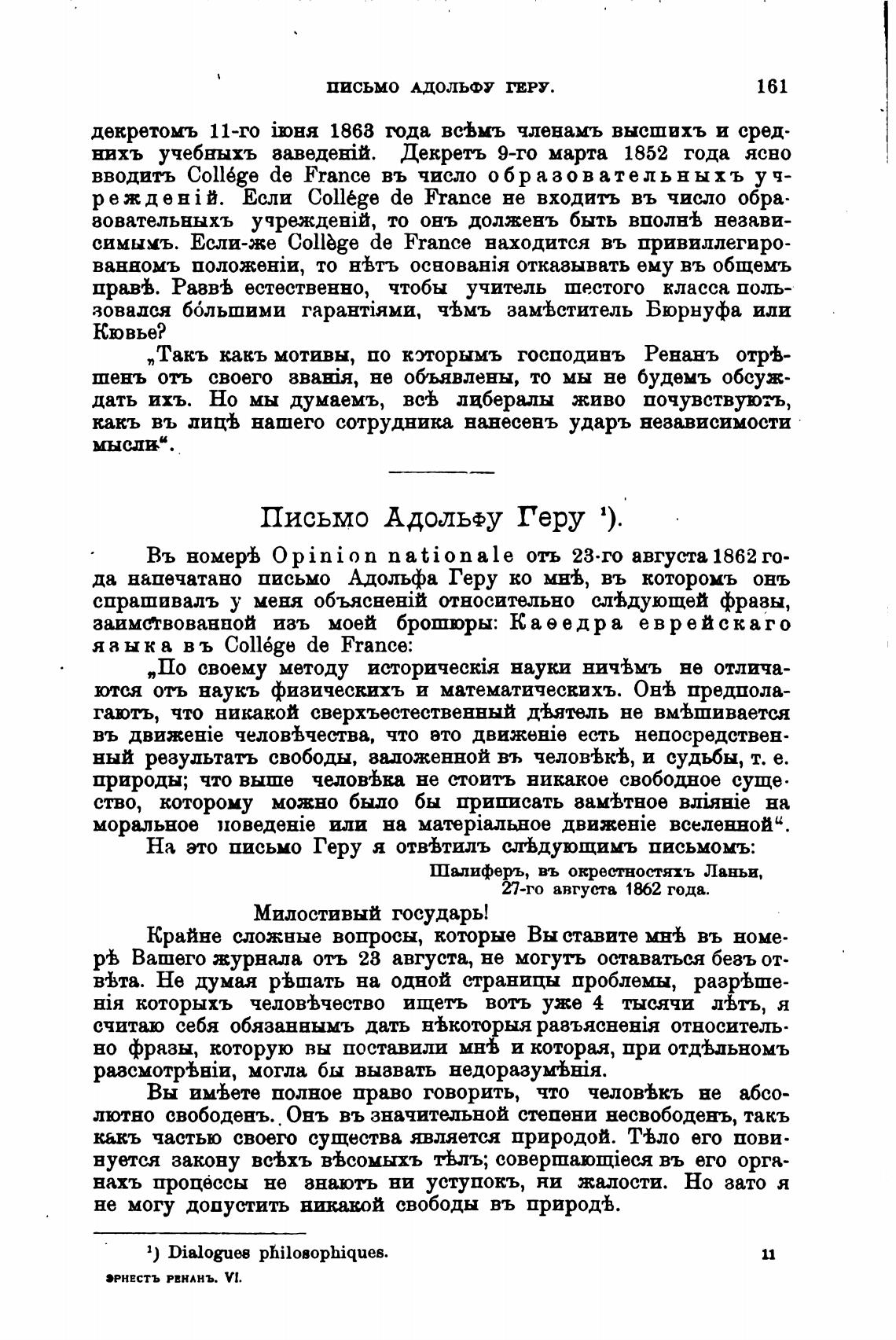 „Такъ какъ мотивы, по которымъ господинъ Ренанъ отф-