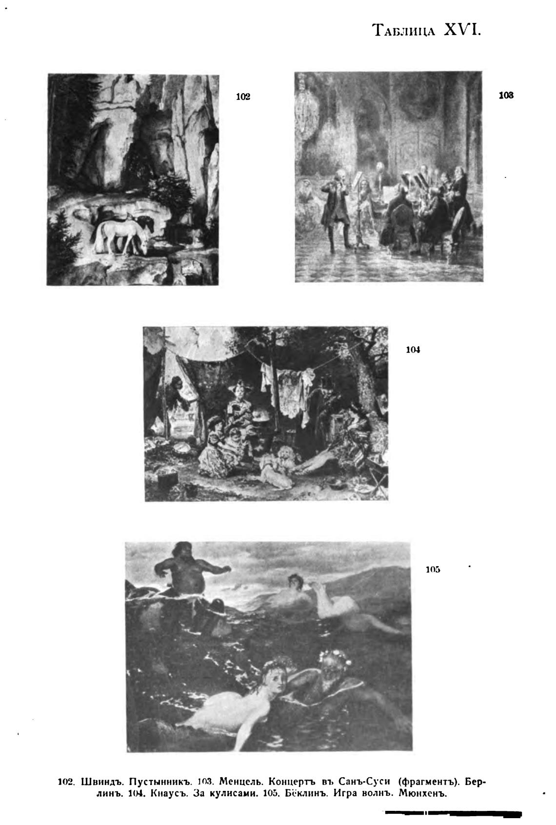 линь. 104. Кнаусъ. За кулисами. 105. Бёклинъ. Игра волнъ. Мюнхенъ.