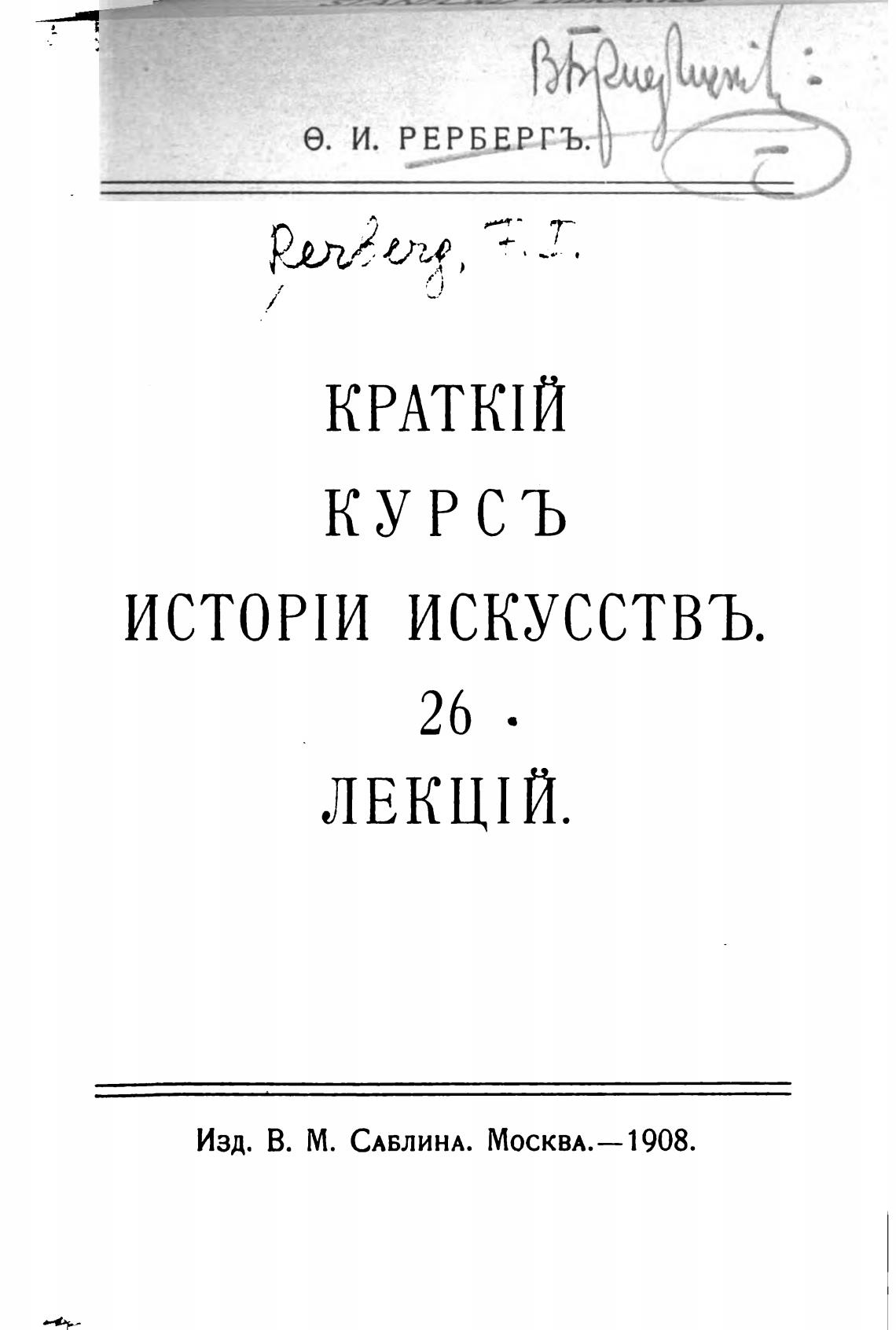 Краткий курс истории искусств. 26 лекций - Рерберг Ф. И.