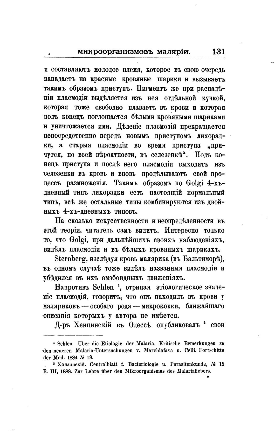 Sehlen. Uber die Etiologie der Malaria. kritische ВететКипдеи zu