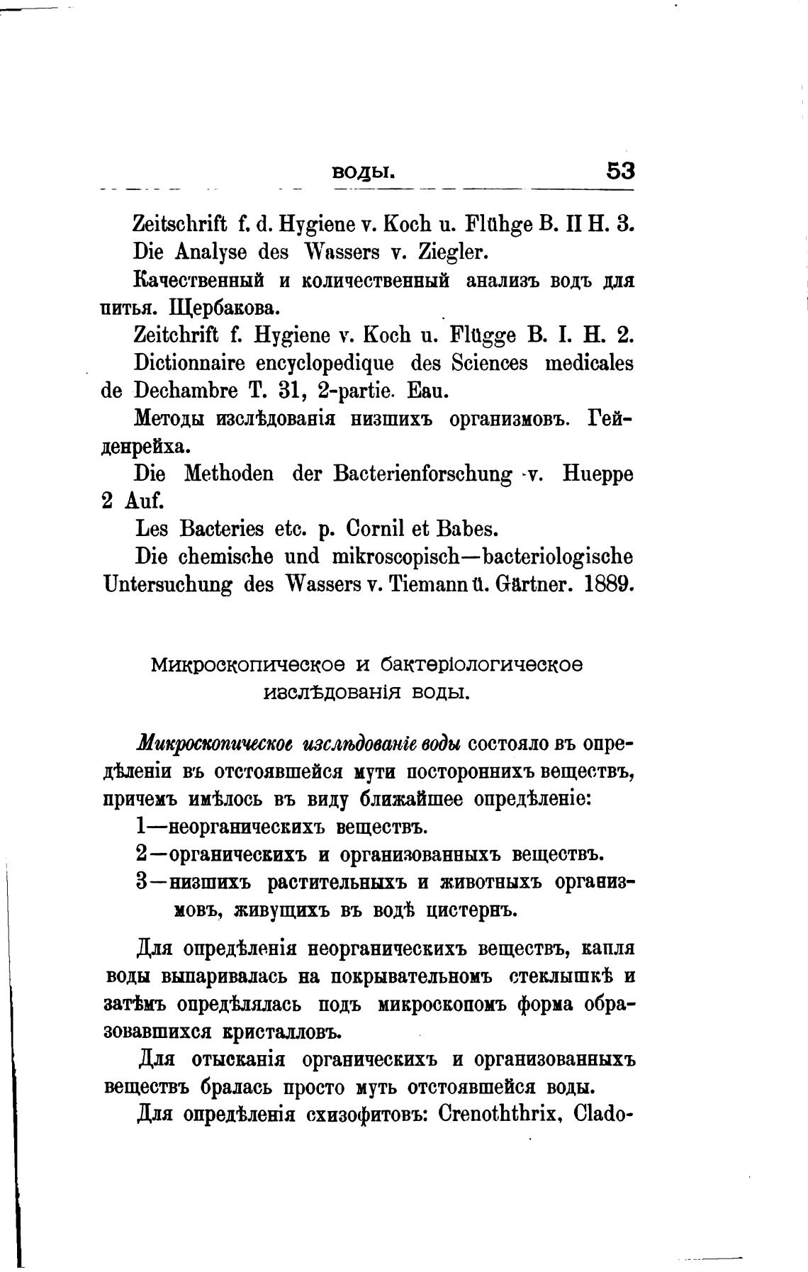 Untersuchung des Wassers У. Tiemann И. Gartner. 1889.