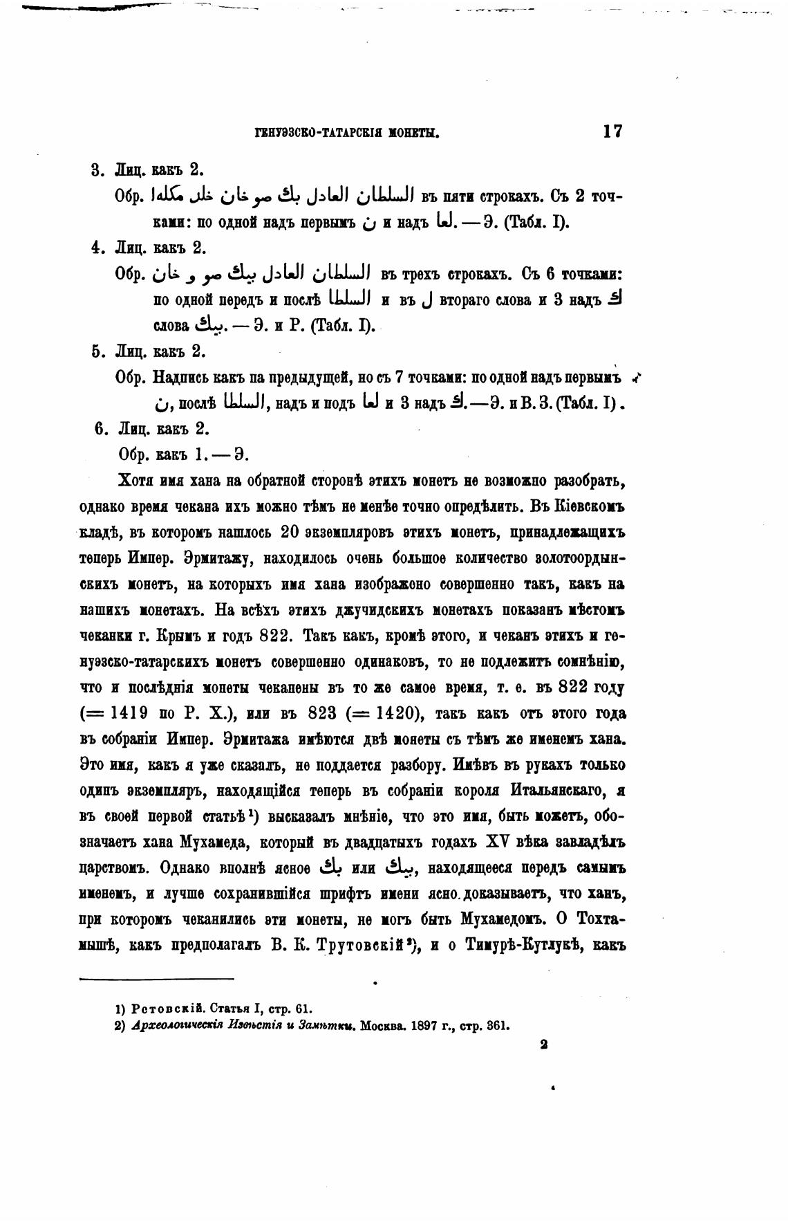 2) Археолошчесхй и Замьтки. 1897 г., стр. 361.