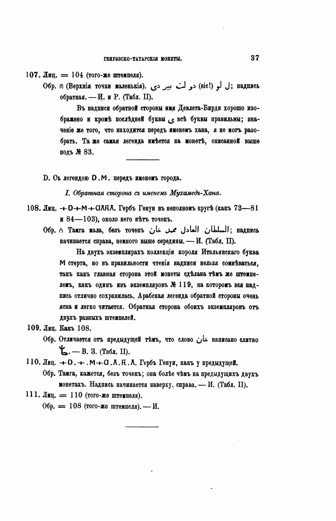 монетахъ. Надпись начинается наверху, справа. — И. (Табл. II).