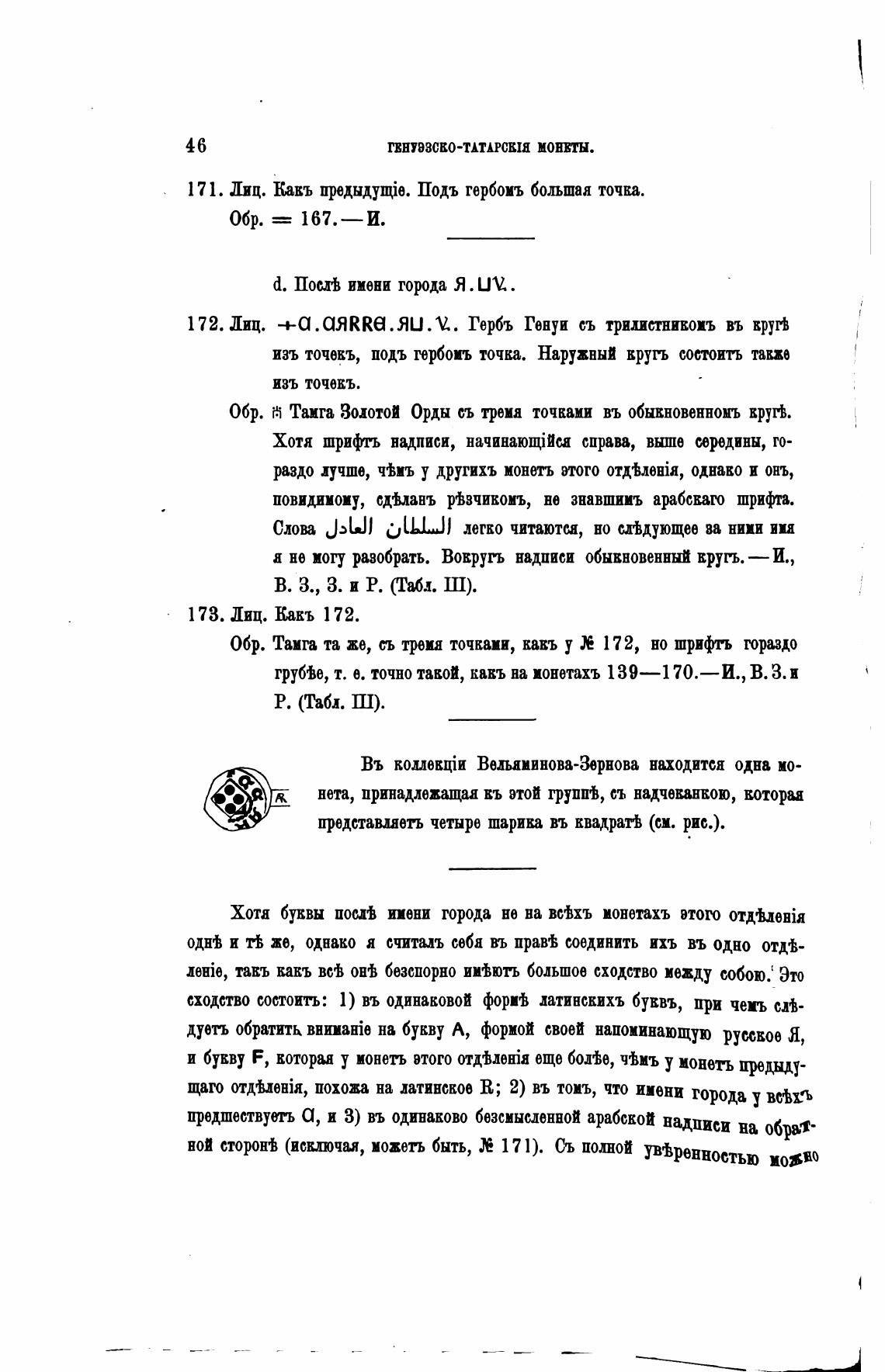 Обр. Тамга та же, сь тума точками, кавъ у 172, но шрифть гораздо