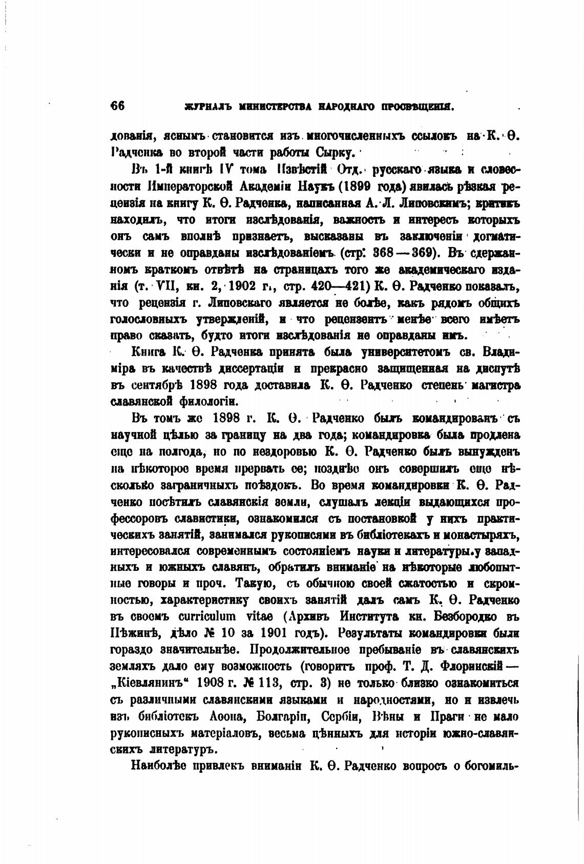 Въ томъ жо 1898 г. К. О. Радченко быхь тиандированъ • сь