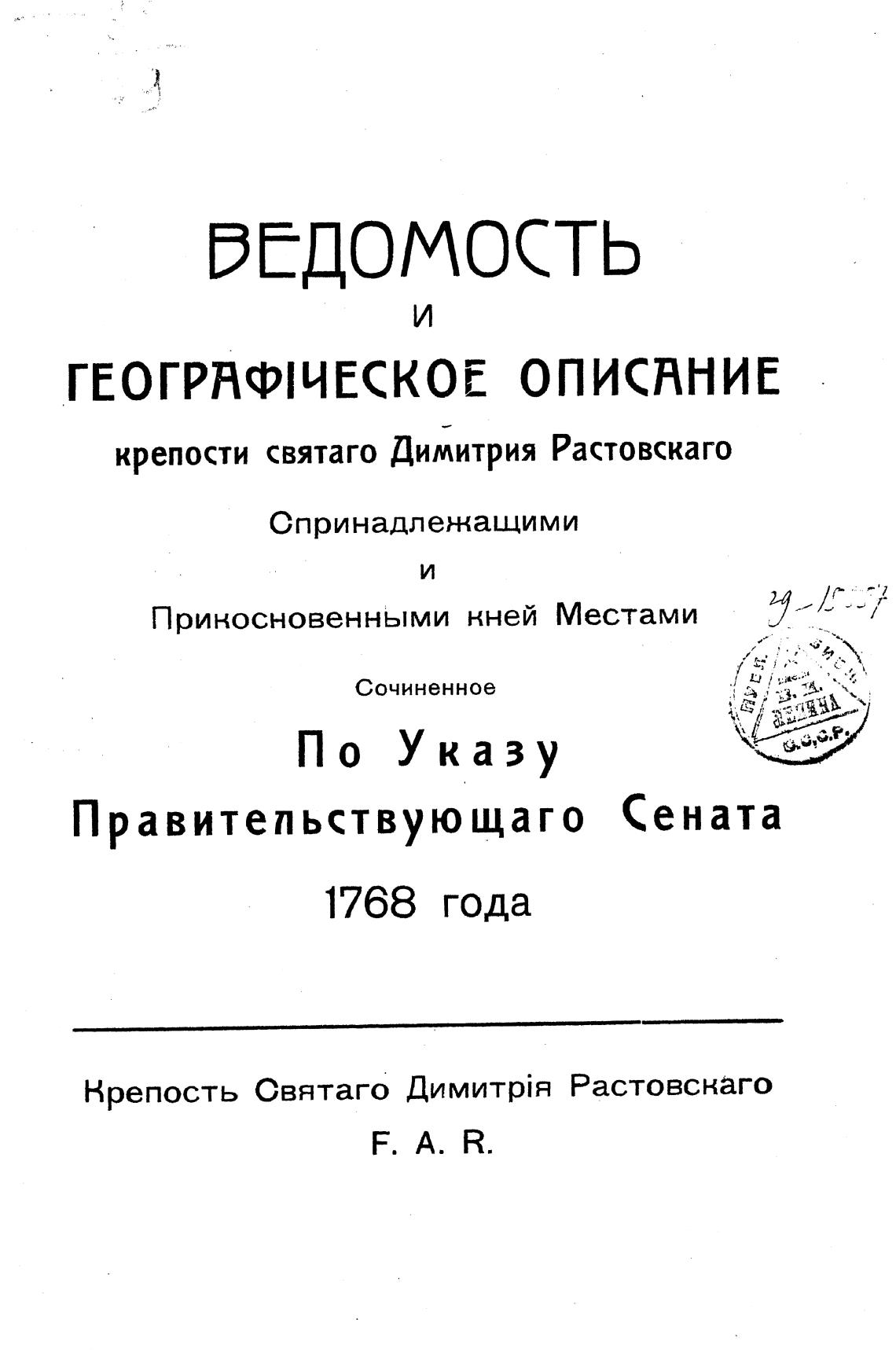 крепости святаго Димитрия Растовскаго