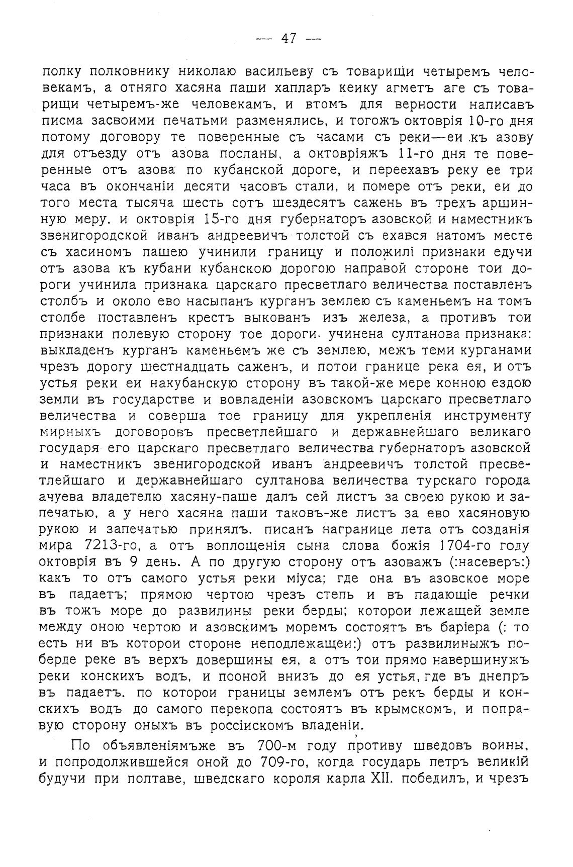 и попродолжившейся оной до 709-го, когда государь петръ велик1й