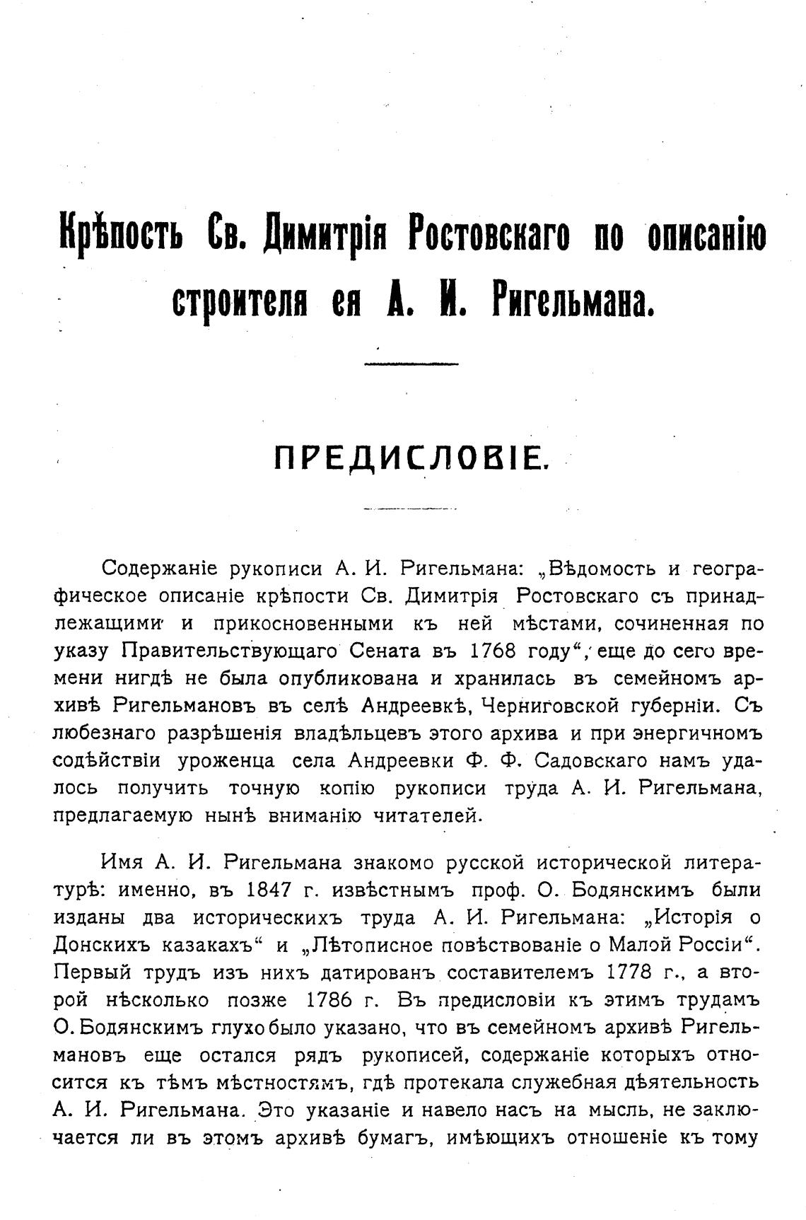 Имя А. И. Ригельмана знакомо русской исторической литера-