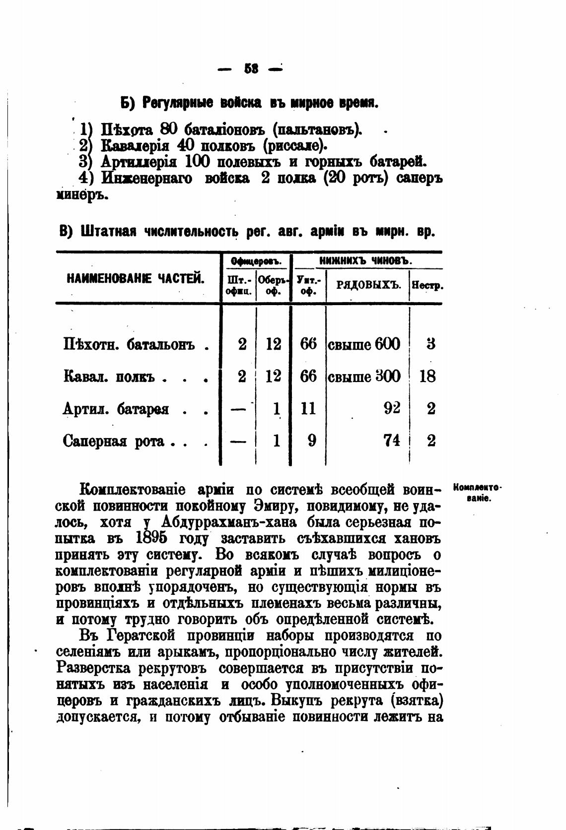 Б) Регулярные войска въ мирное врет.