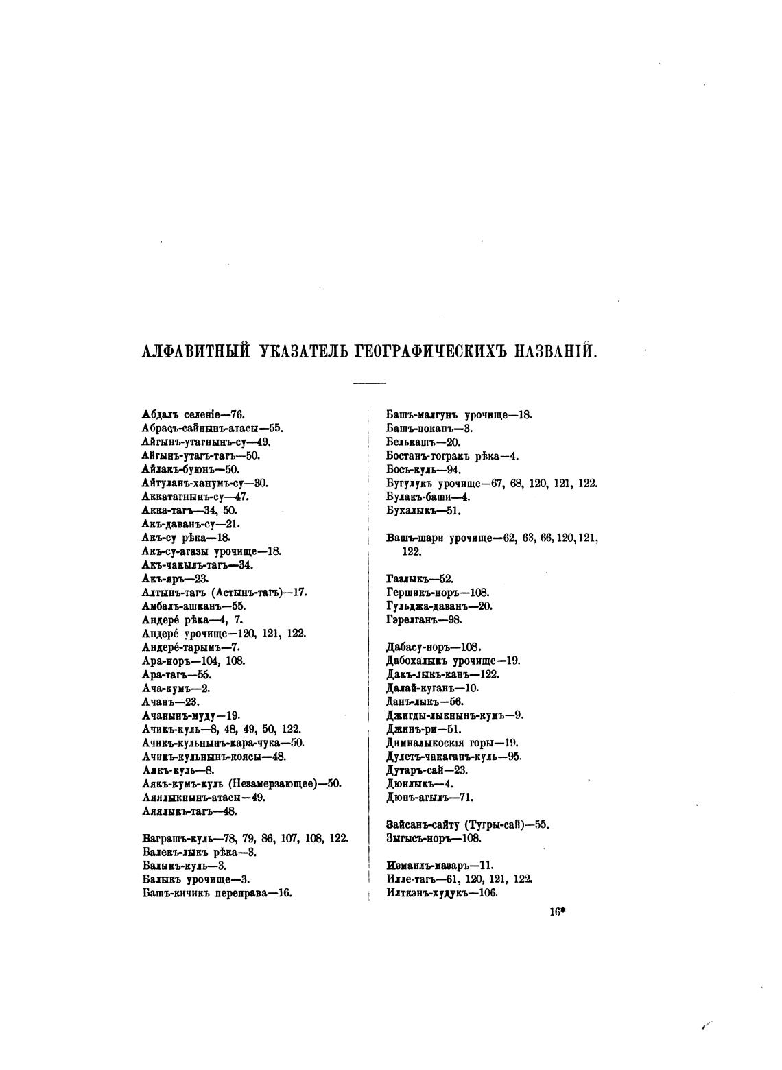 АЛФАВИТНЫЙ УКАЗАТЕЛЬ ГЕОГРАФИЧЕСКИХЪ НАЗВАНТЙ.