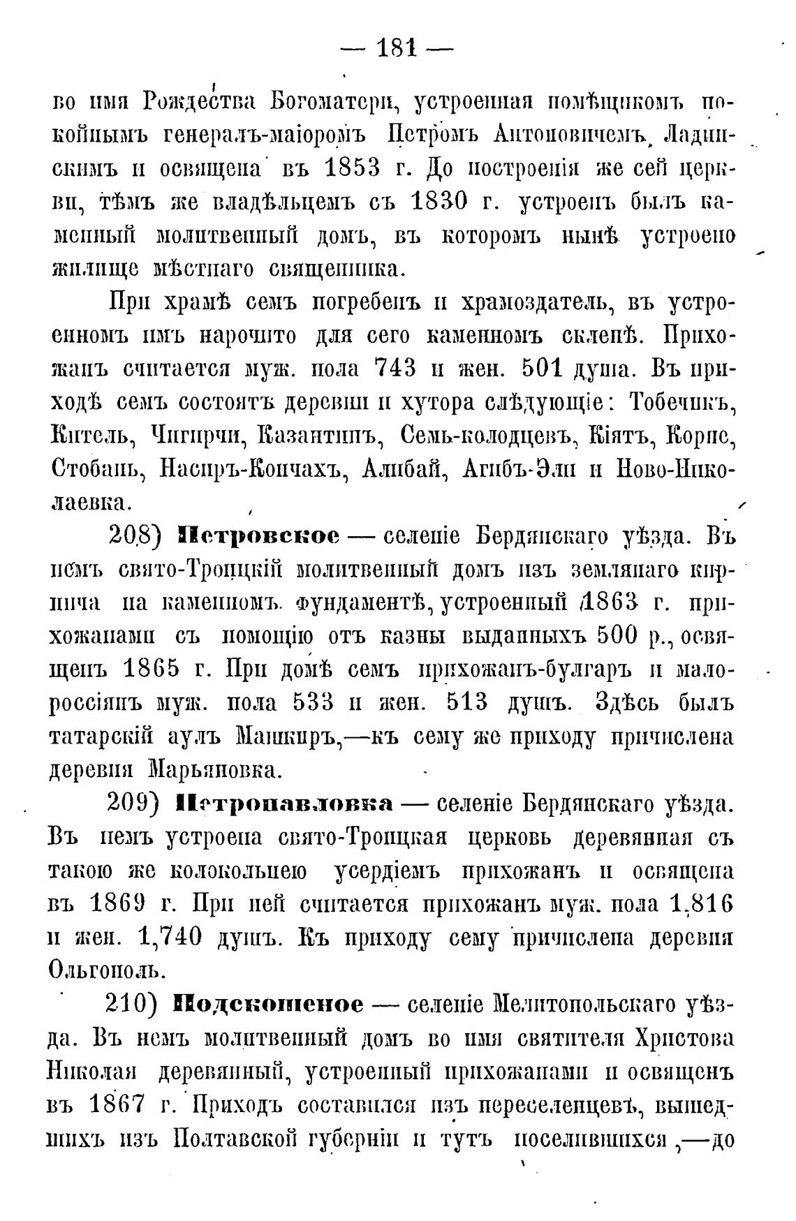 209) Петропавловка — Бердянскаго уВзда.