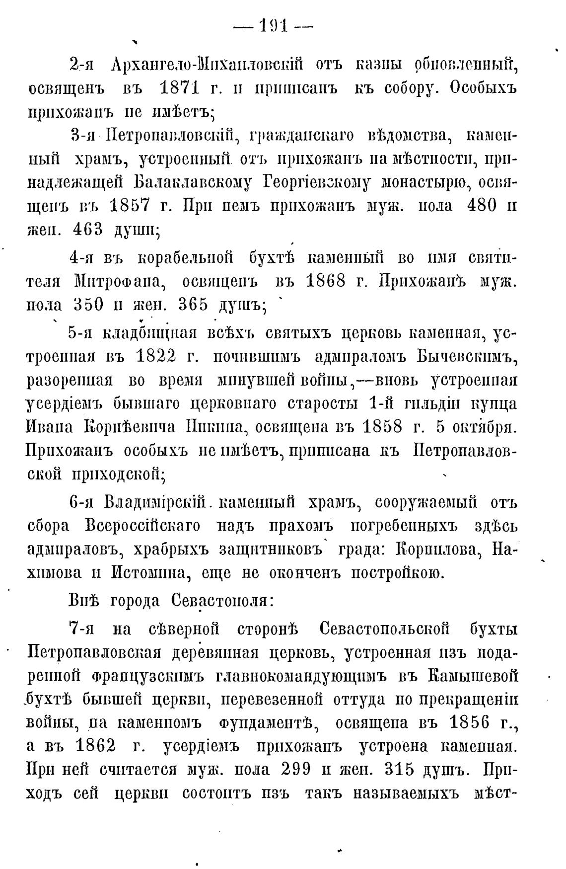 троенная въ 1822 г. почившимъ адмпраломъ Бычевскпмъ,