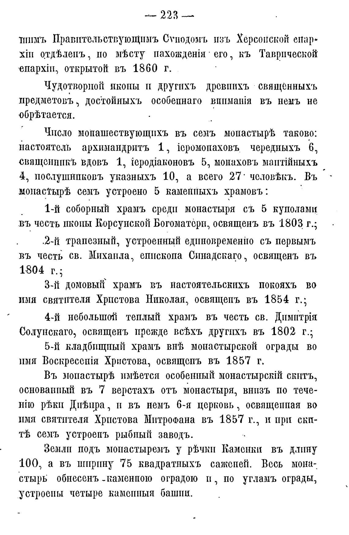 монастыргђ семь устроено 5 камеппыхъ храмовъ :