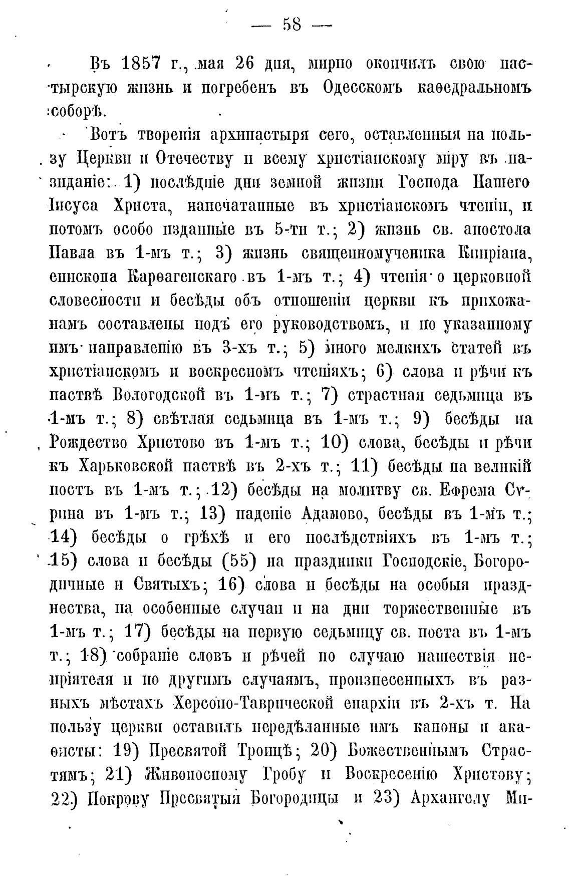 •тырскую жизнь и погребень въ Одесскомъ каэедральномъ