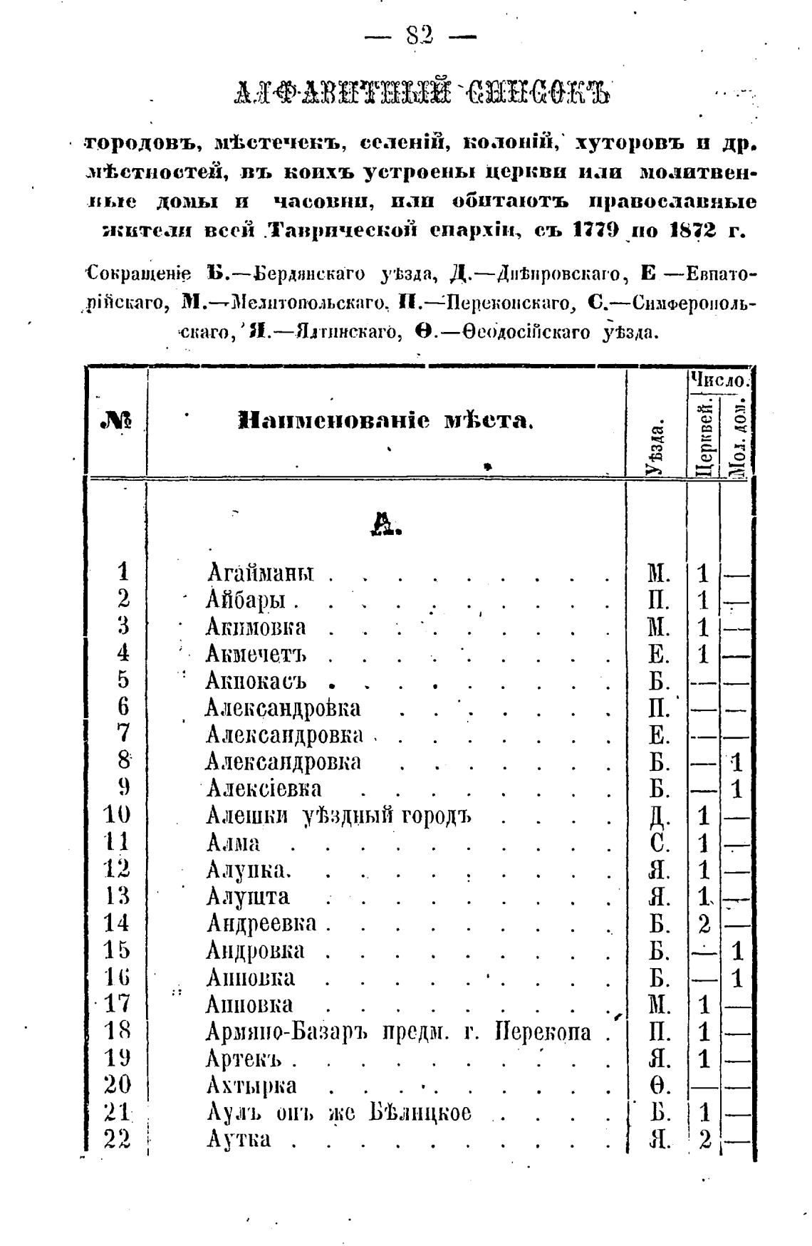 ;китеаи всей .ТаврическоЙ enapxiu, съ 1779 по 1872 г.