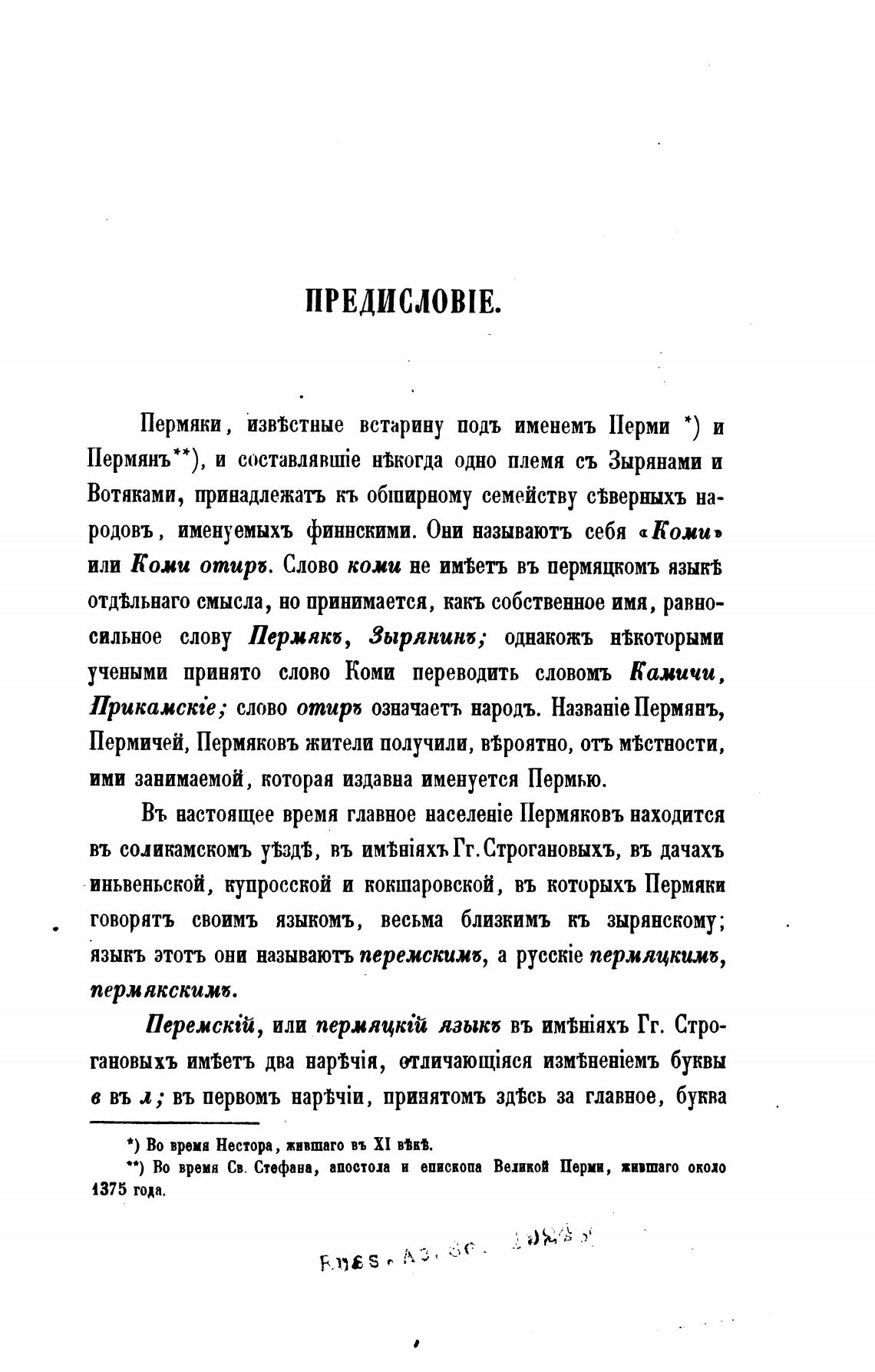 языкъ этотъ они называють перемскижб, а pycckie пермяцкимб,