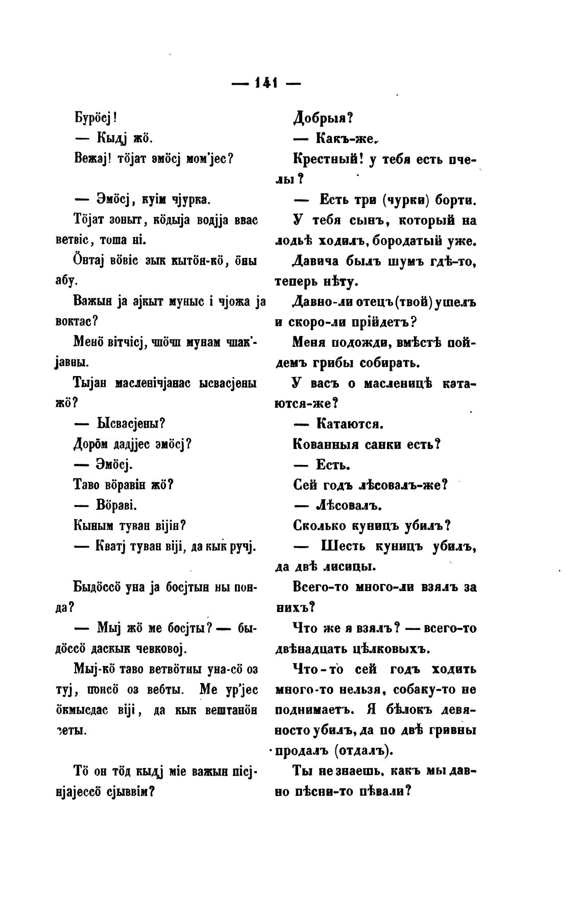 Важын ја ајкыт муныс i чјожа ја Давно-ли отецъ (твой) ушелъ