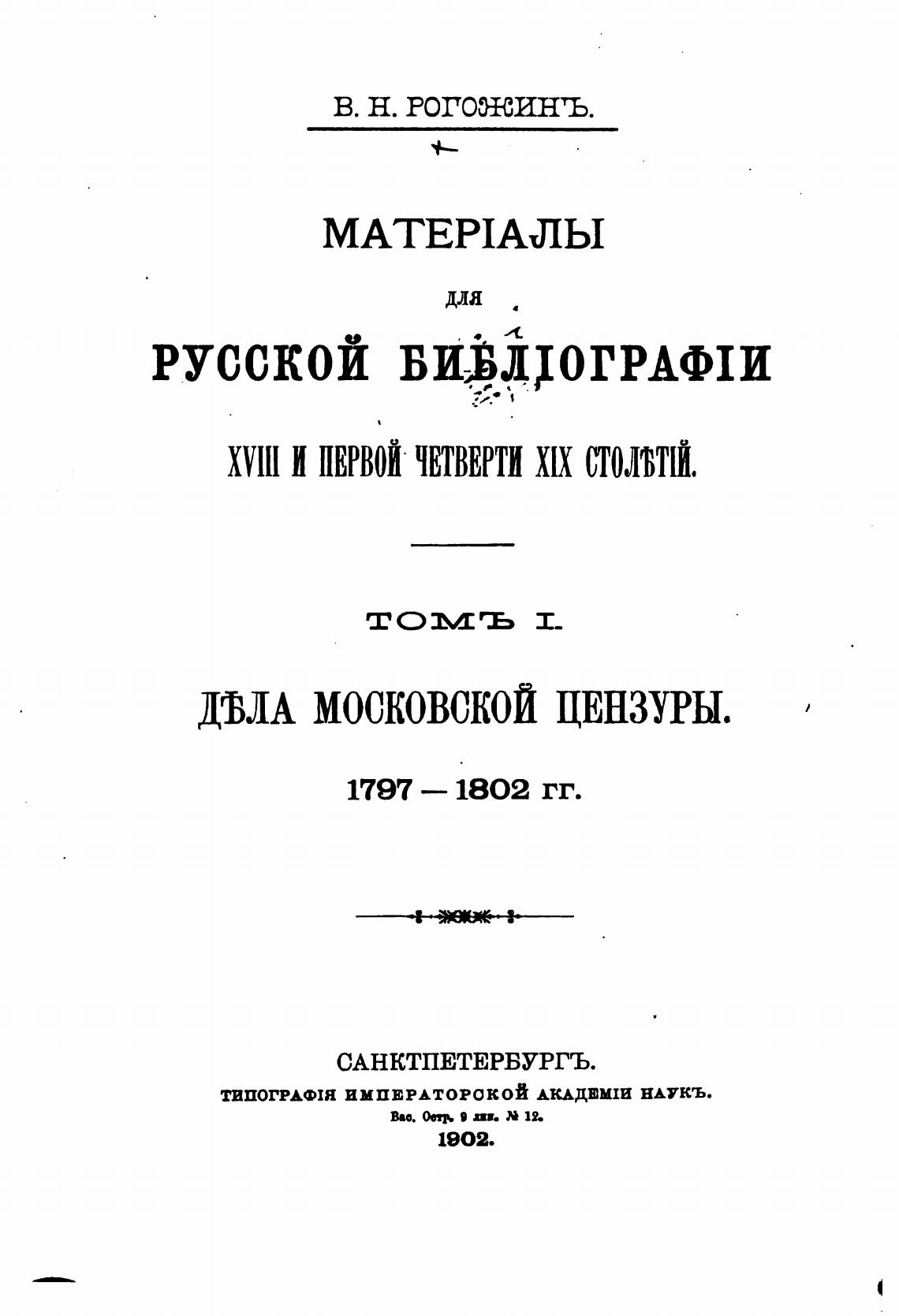 ТИПОГРАФИ ИМПЕРАТОРОКОЙ АКАДЕМШ НАУКЪ.