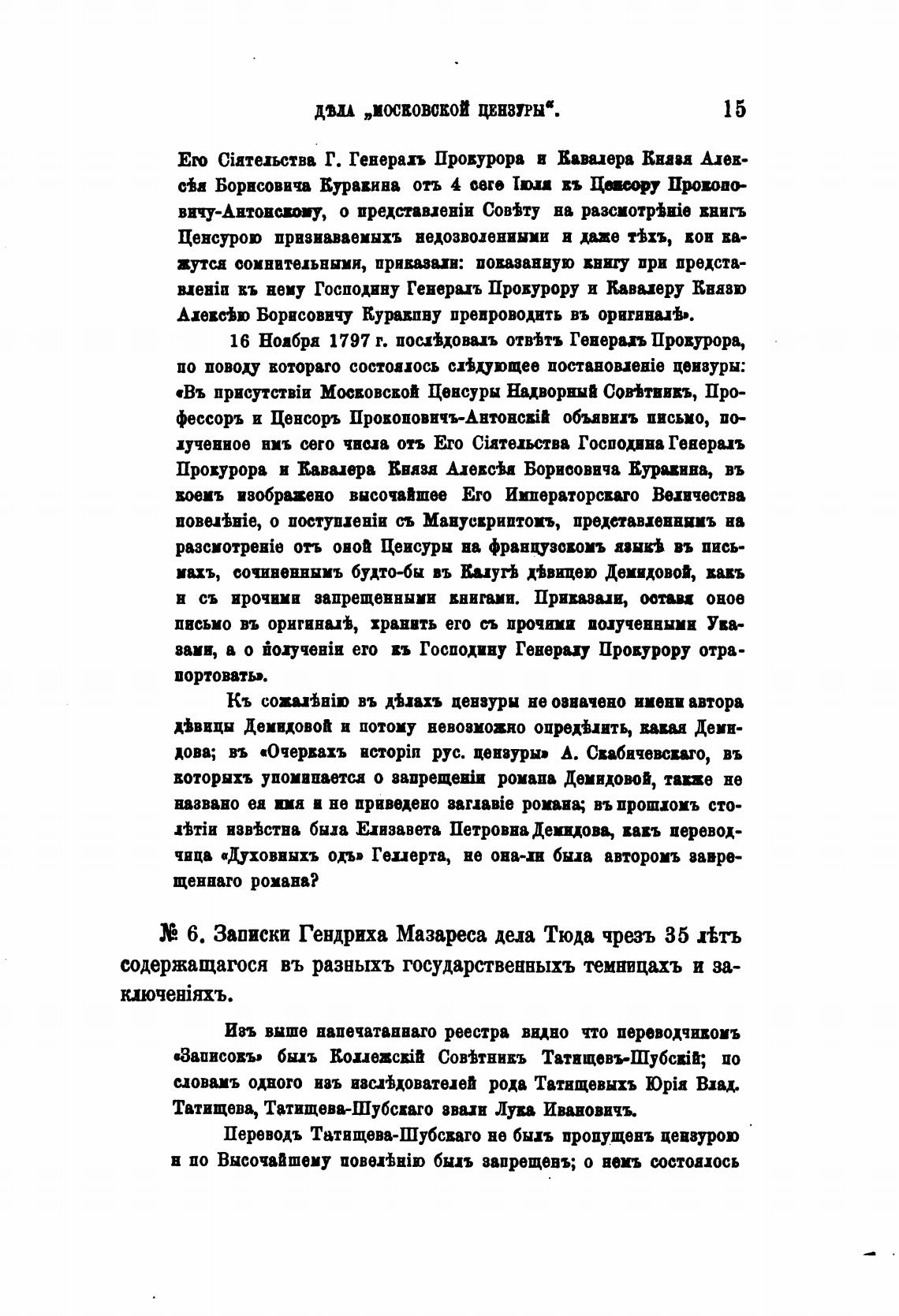 Переводъ Татвщева-Шубсваго не был пропущенъ цеввурою