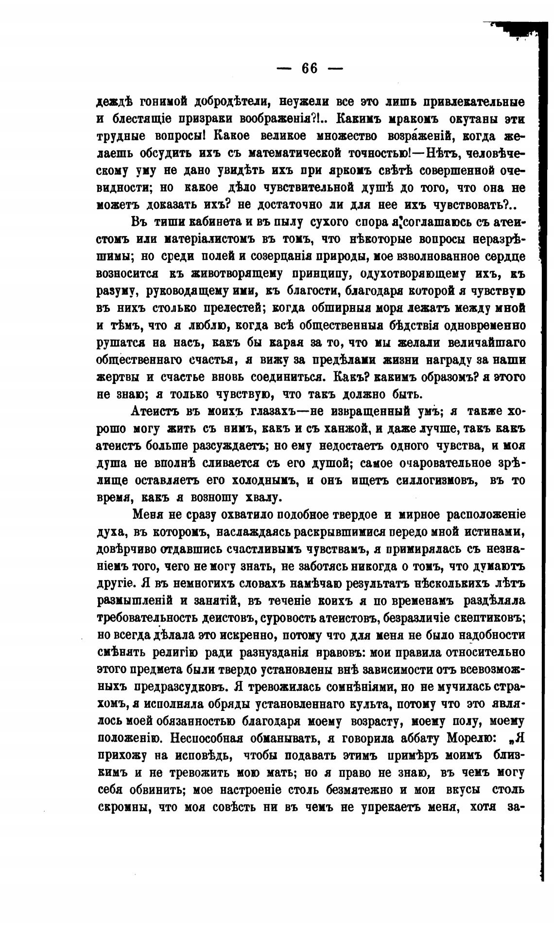 атеистъ больше разсуждаеть; но ему недостаетъ одного чувства, и моя