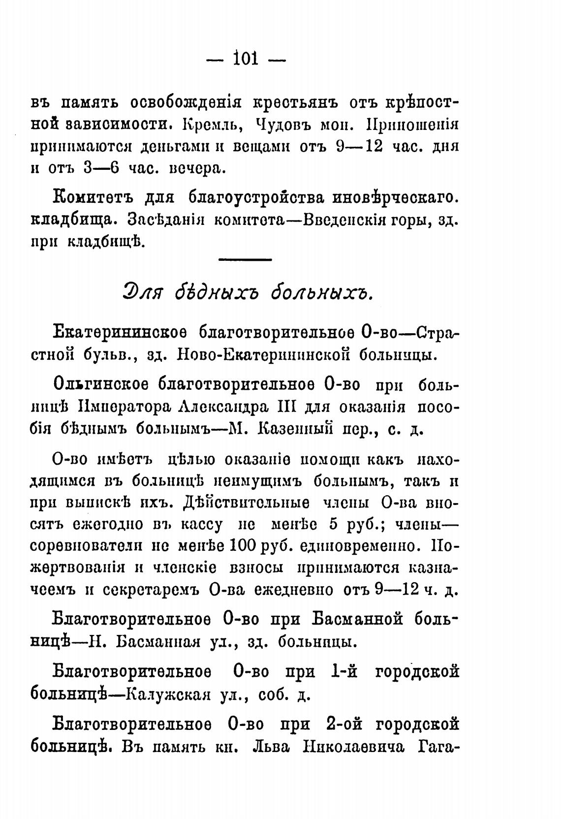 6'Ьднымъ больнымъ—М. Казенный пер., с. д.