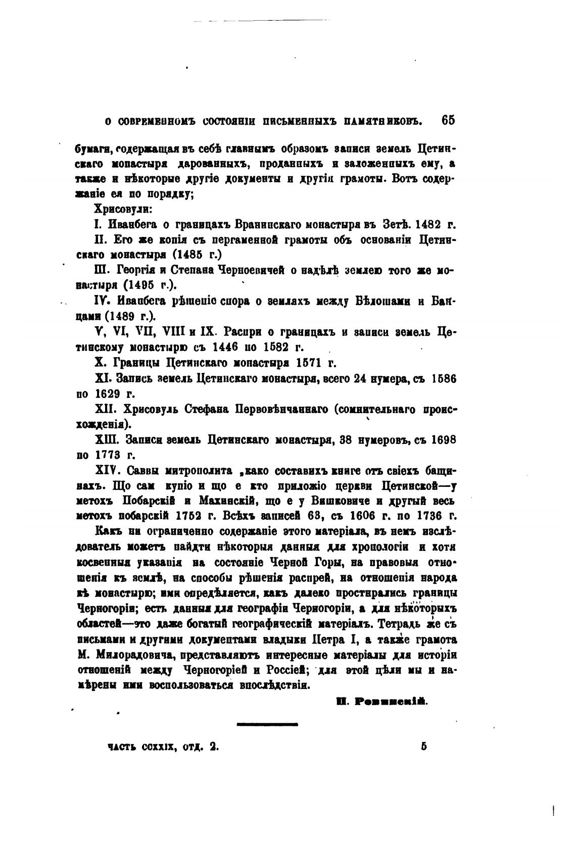 1. Иваабега о гранвцахъ Враняасваго монастыра въ ЗетЬ. 1482 г.