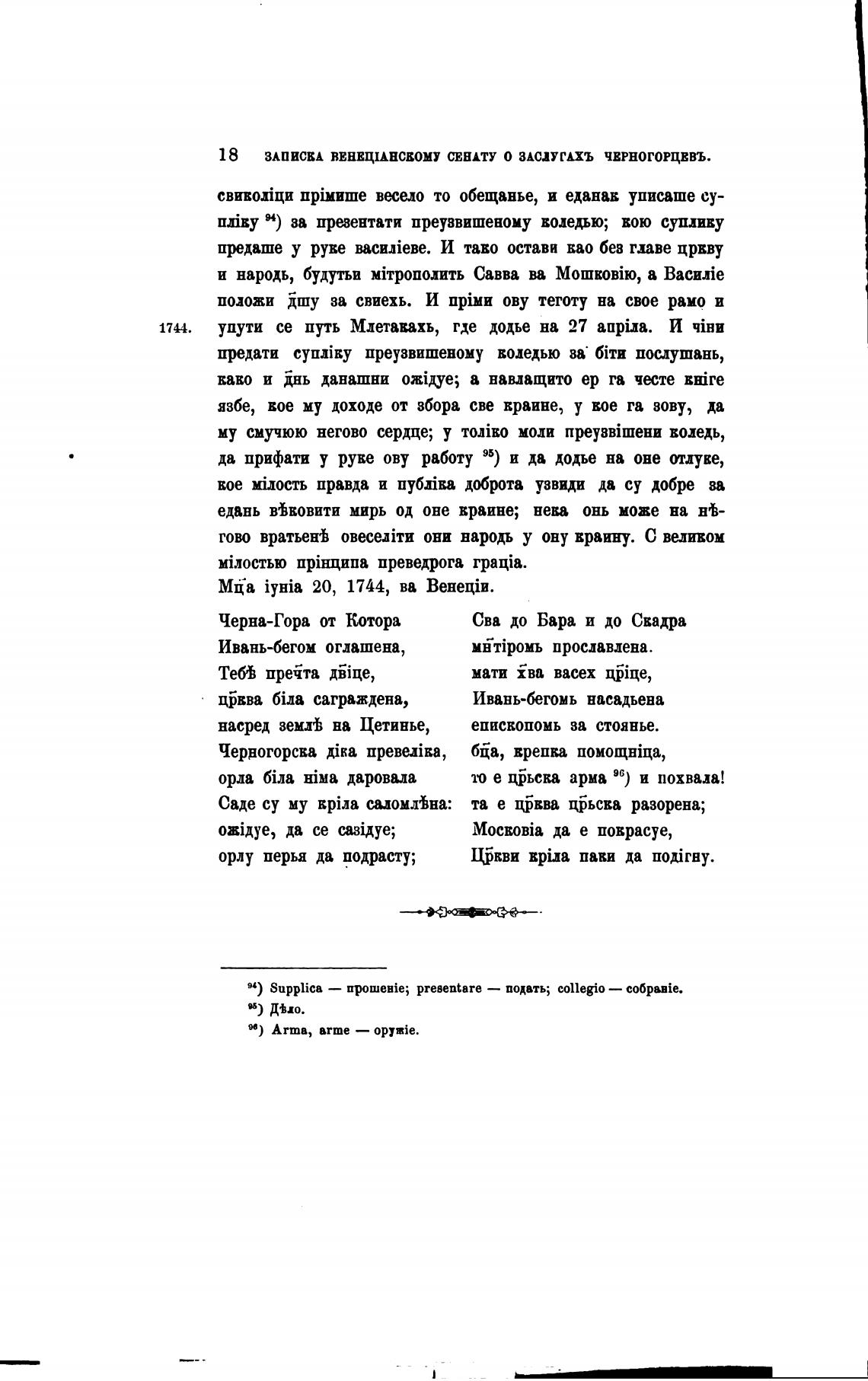 18 ЗАПИСВА ВЕНЕЩНСВОМУ СЕНАТУ О ЗАСЛУГАХЪ ЧЕРНОГОРЦЕВЪ.