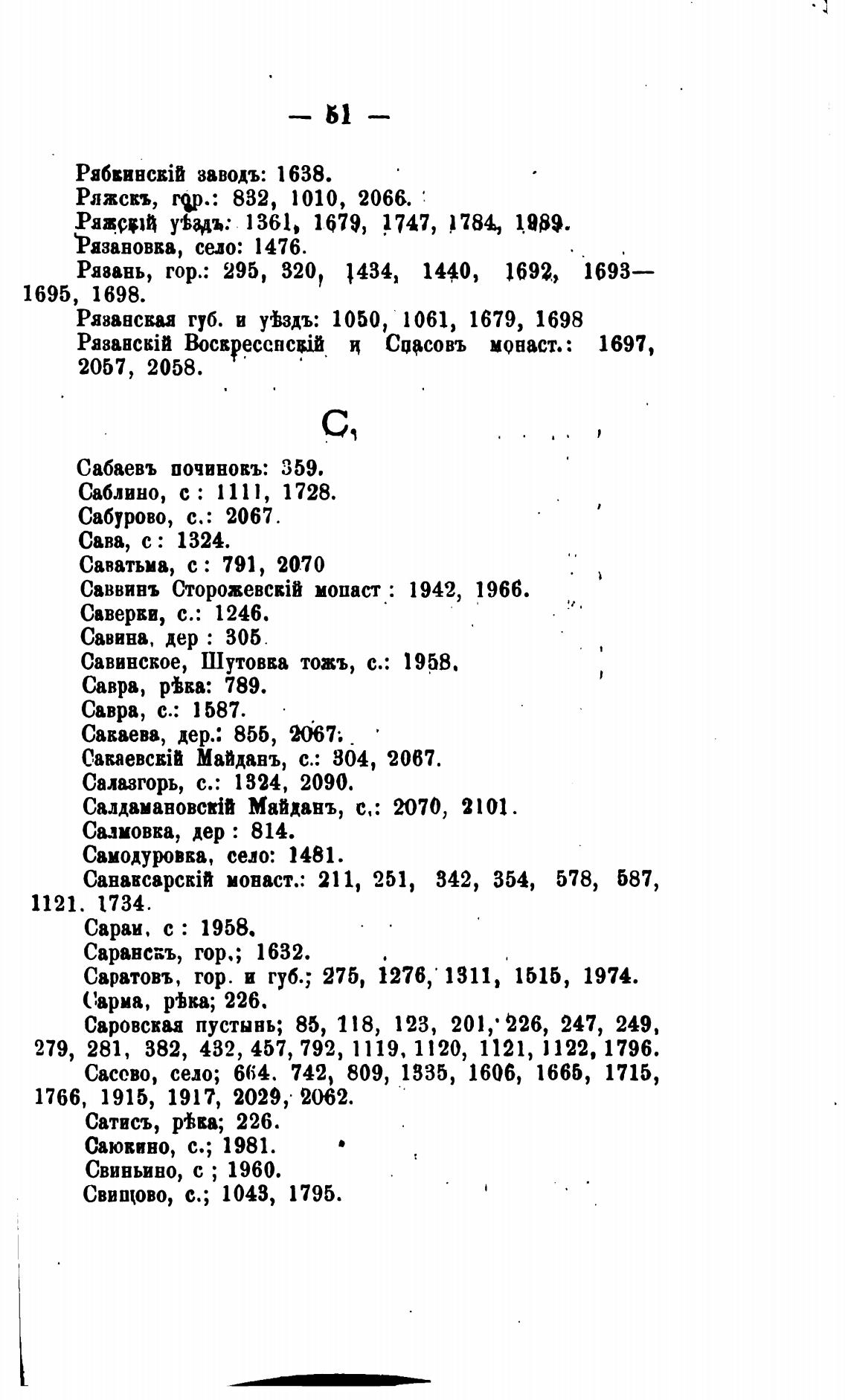 Сасово, село; 664. 742, 809, 1335, 1606, 1665, 1715,