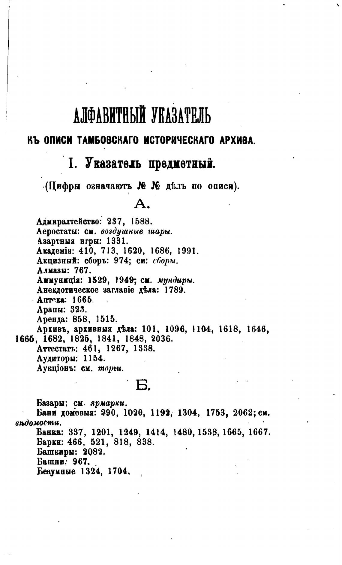 КЬ описи ТАМБОВСКАГО ИСТОРИЧЕСКАГО АРХИВА.