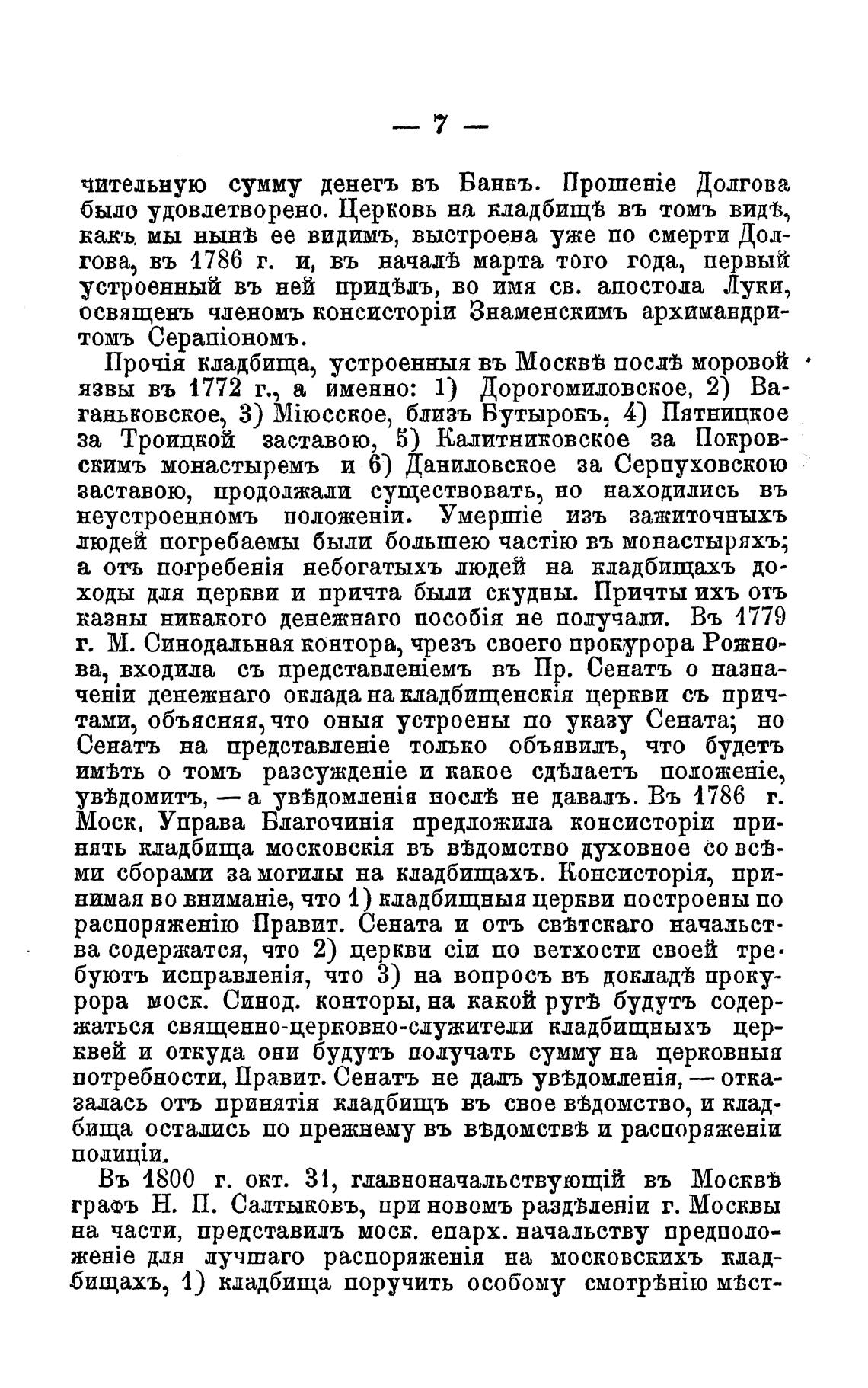 кладбища, устроенныя въ Москвђ посдђ моровой