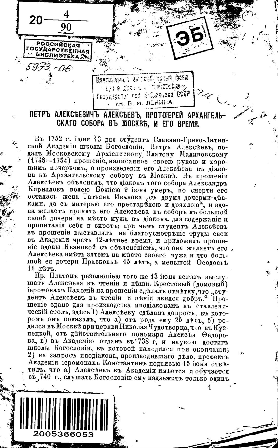 Въ 1752 г. 33 дня студентъ Славяно-Греко-Латин;