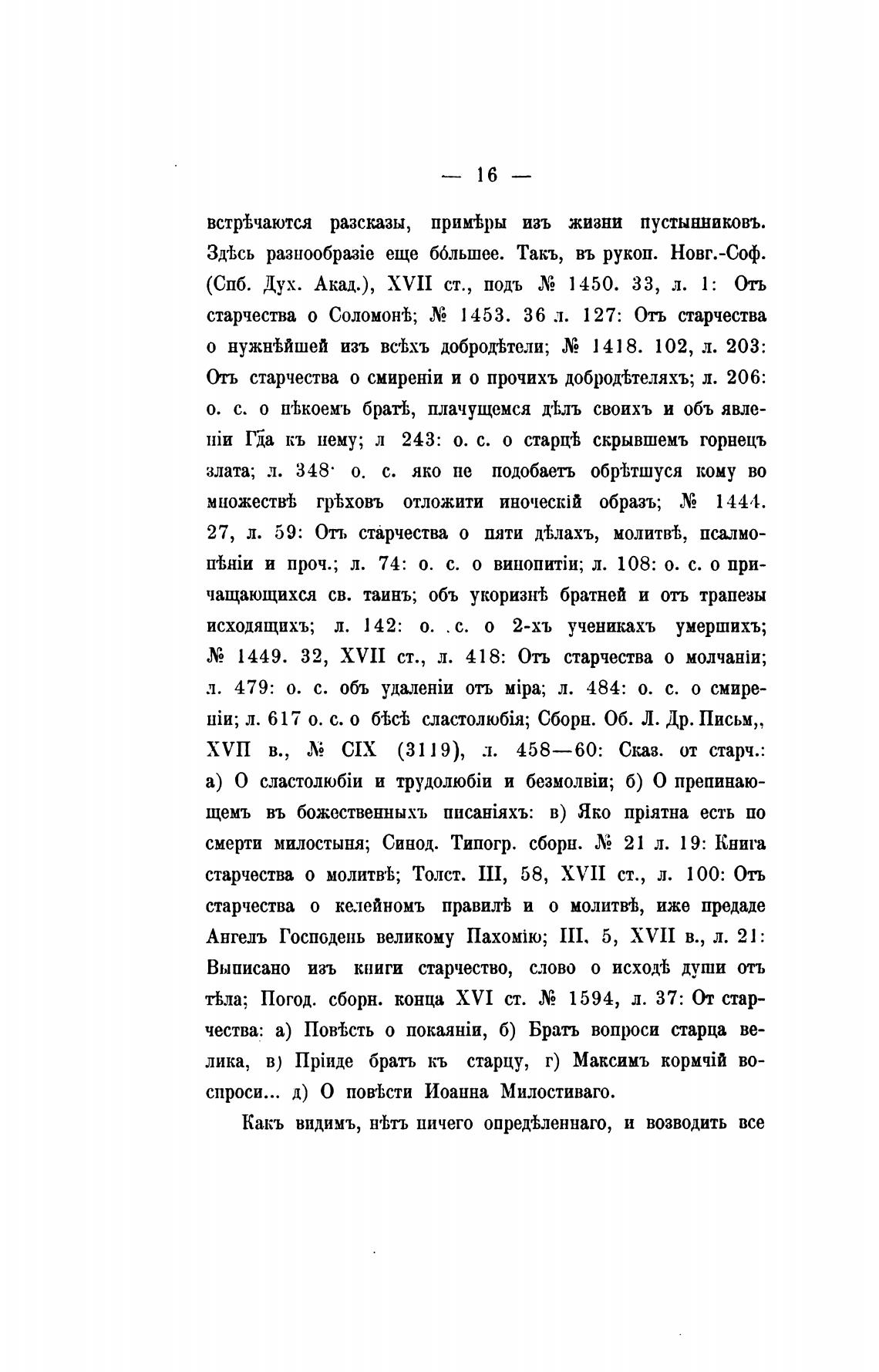 старчества о молитв'Ь; Толст. III, 58, XVII ст., л. 100: Отъ