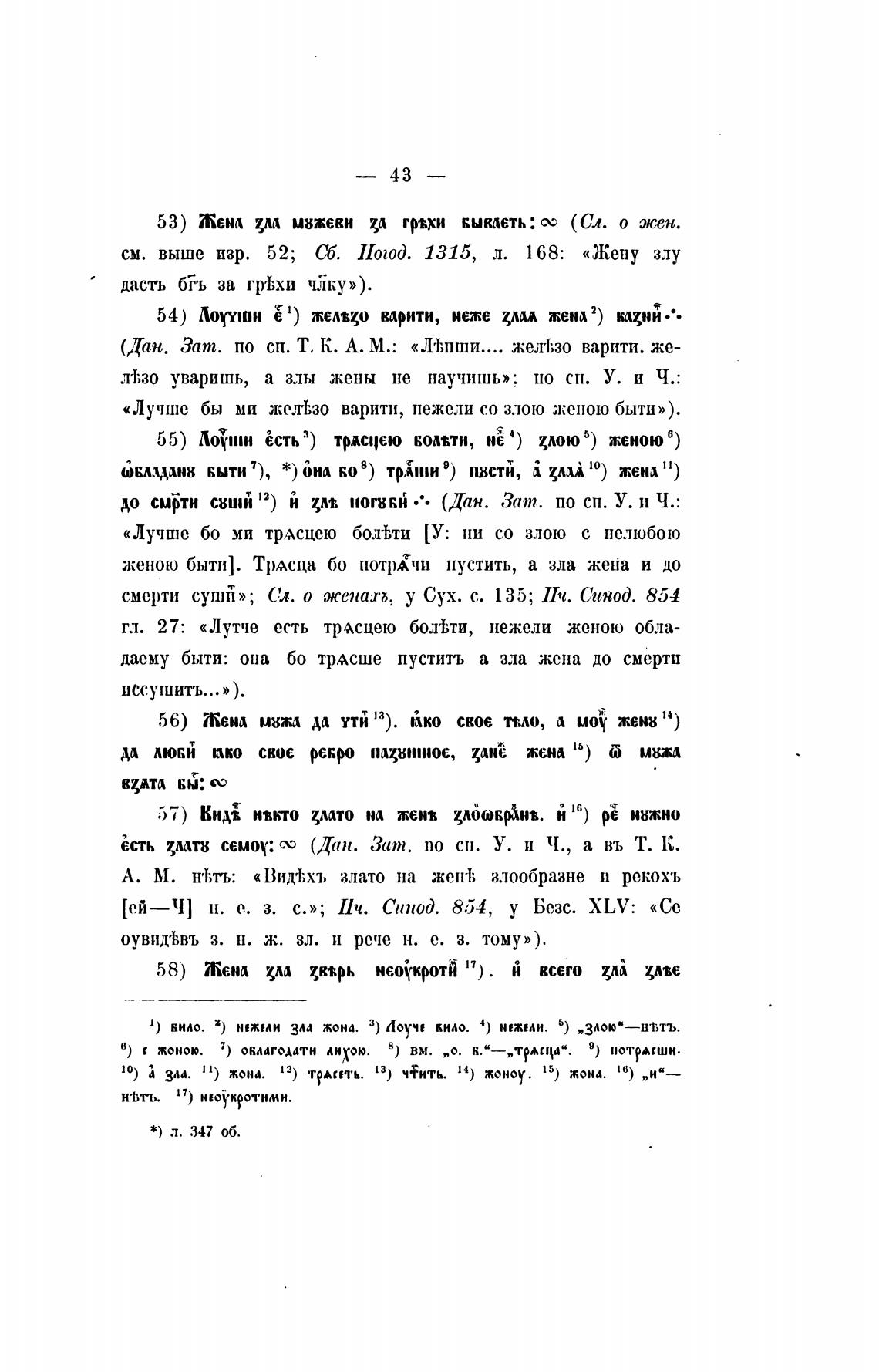 см. выше изр. 52; Сб. Погод. 1315, л. 168: «Жену злу