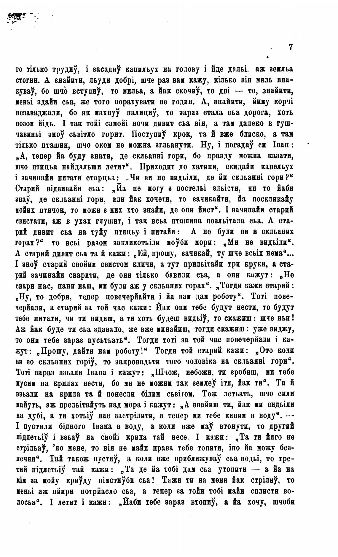 свари нас, пани наш, ви були аж у скльаних горах“. „Тогди кажи старий :