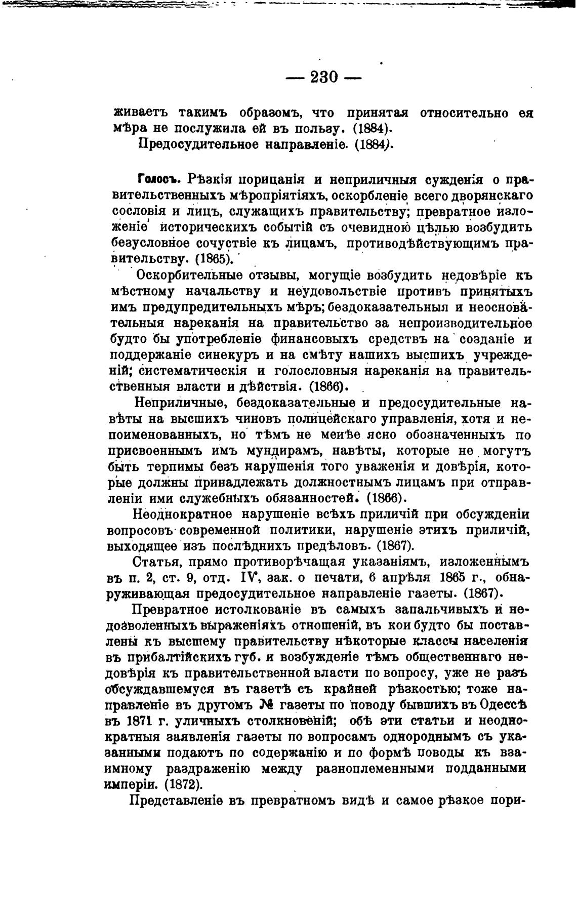 Голосъ. порицанЈя и неприличныя сужден:я о пра-