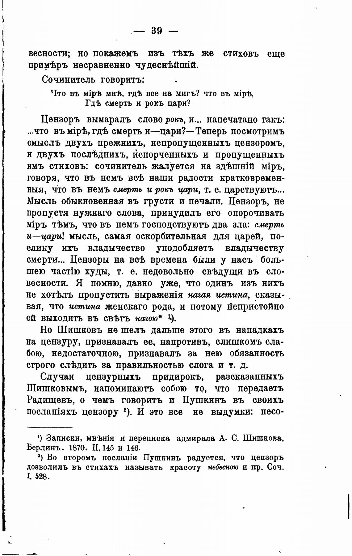 Но Шишковъ не шель дальше этого въ нападкахъ