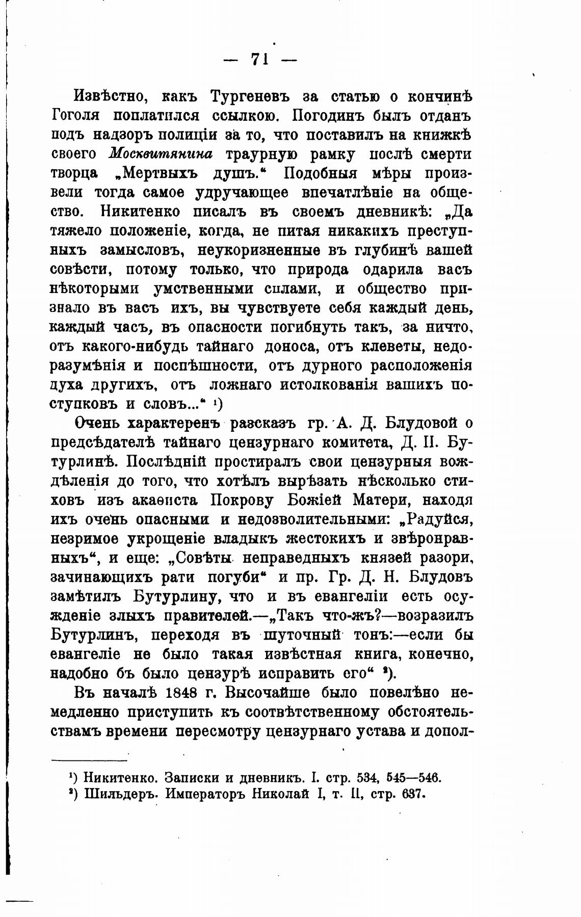 1) Никитенко. Записки и дневникъ. 1. стр. 534, 545—546.