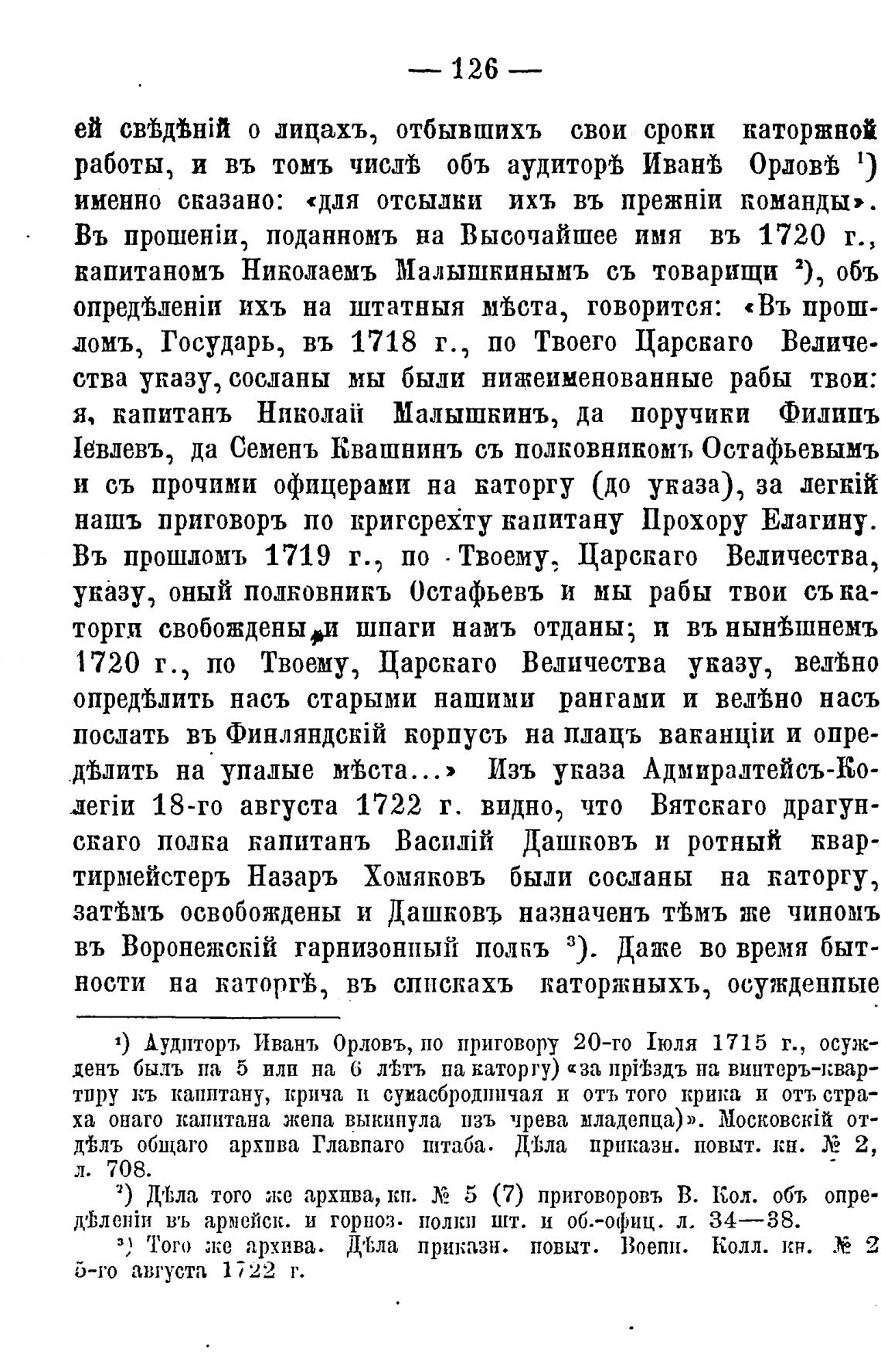 1) Аудпторъ Ивань Орловъ, по приговору 20-го Люля 1715 г., осуж-