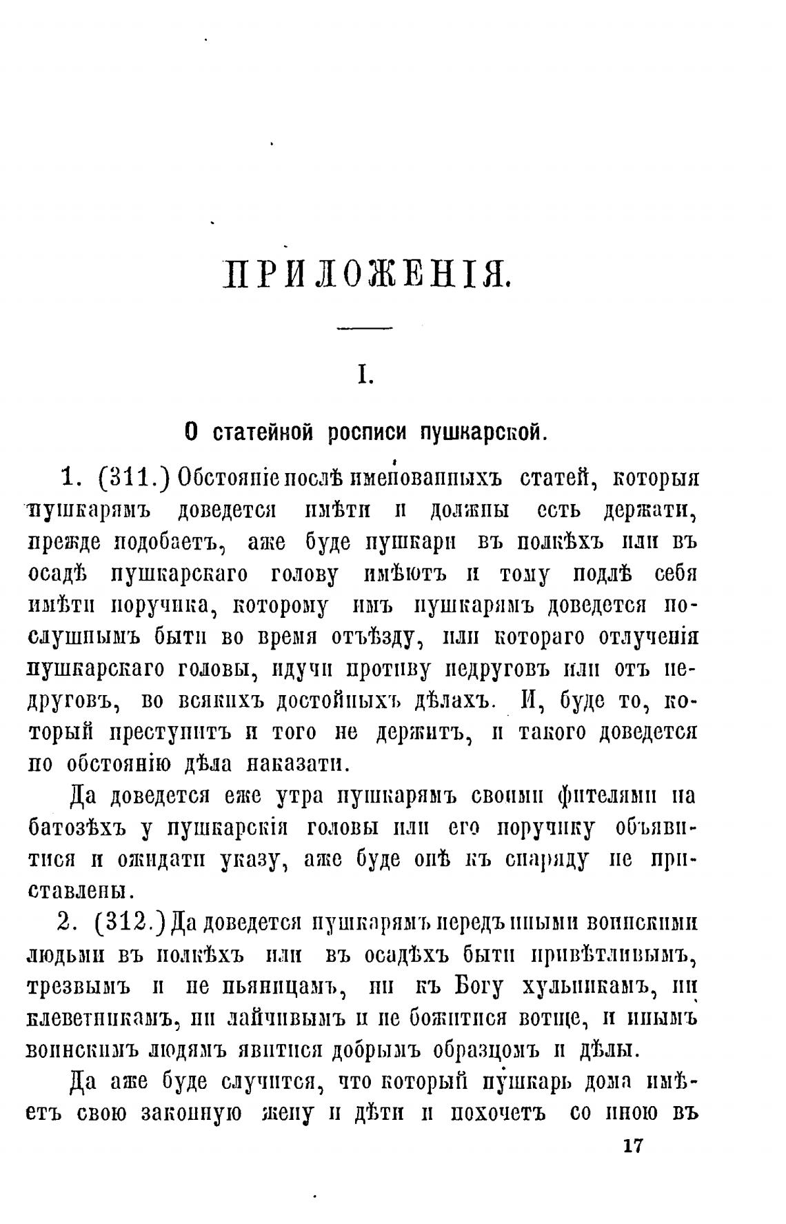 2. (312.) Да доведется пушкарямъ иередъ иНыми воинскими