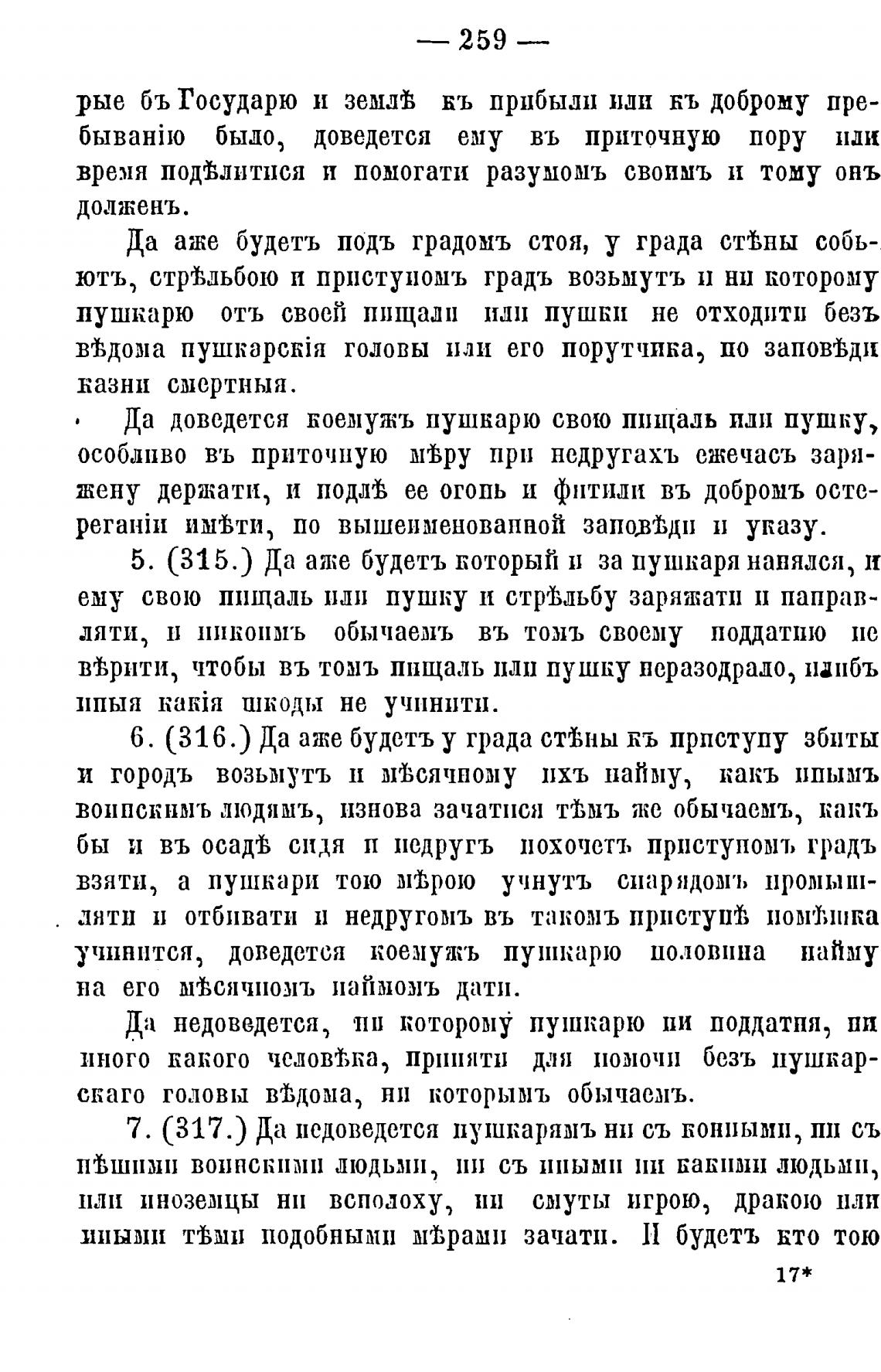 7. (317.) Да недоведется пушкарямъ ни съ конными, пп съ